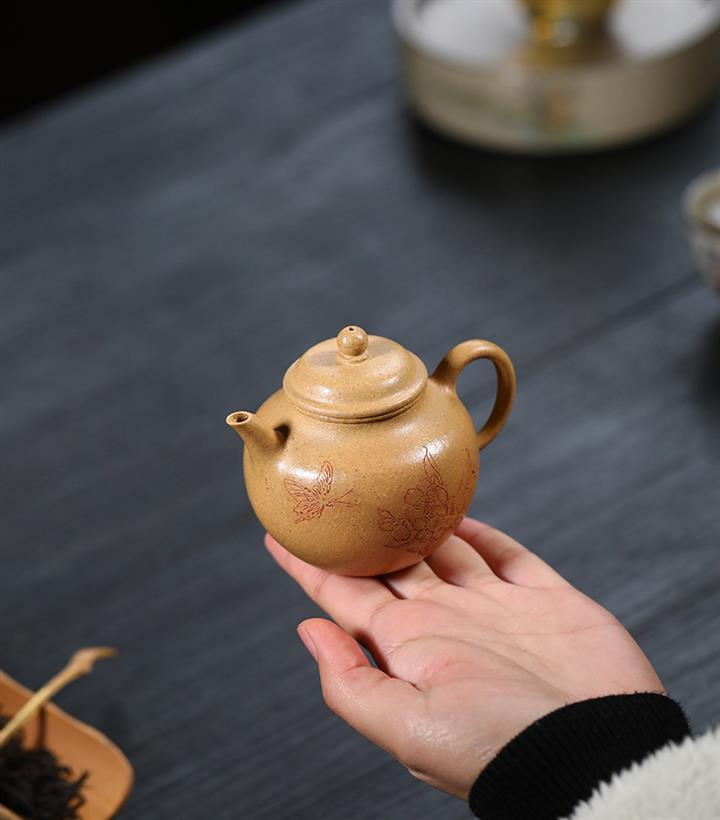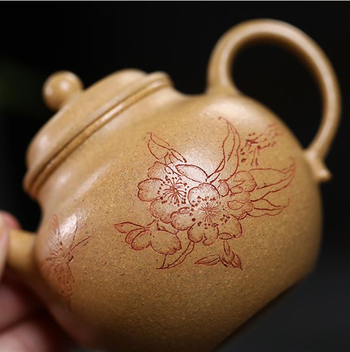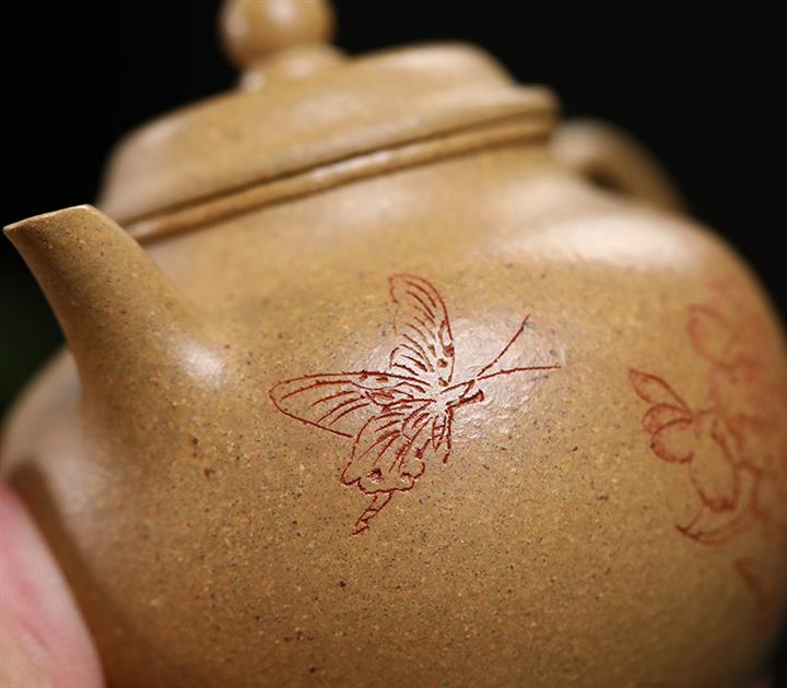 原礦古烏泥滿刻花鳥西施茶壺POT7817