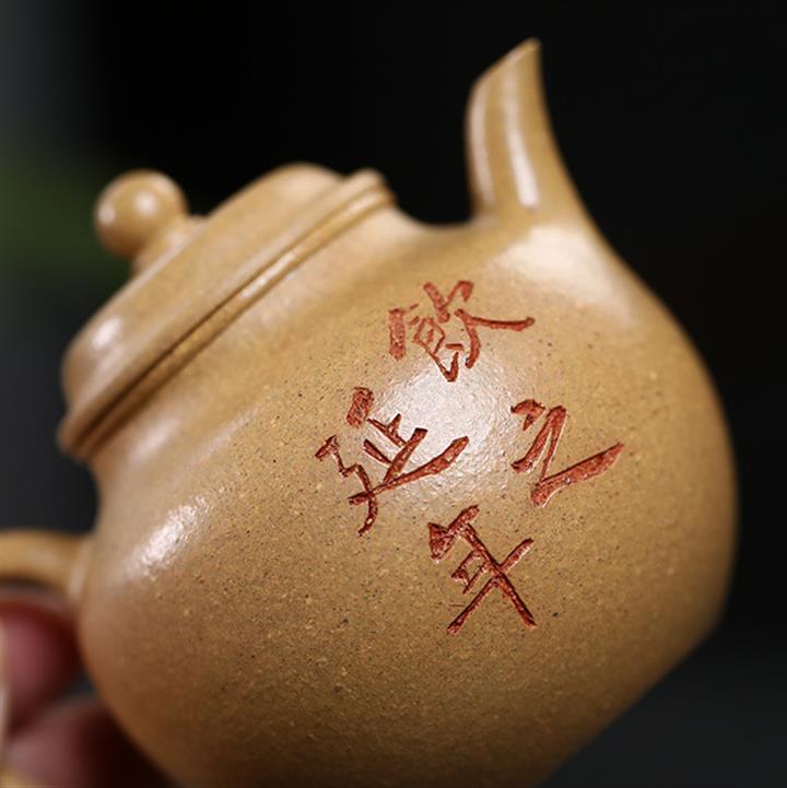 原礦古紅泥金字觀山石瓢茶壺POT7819
