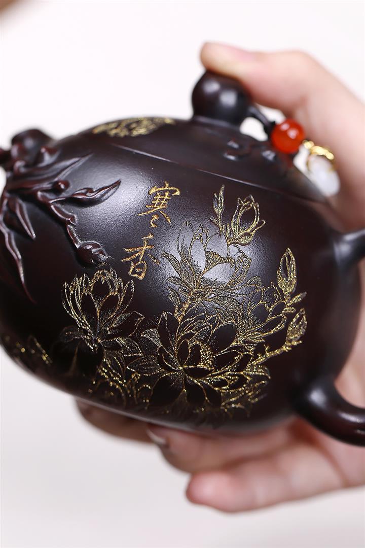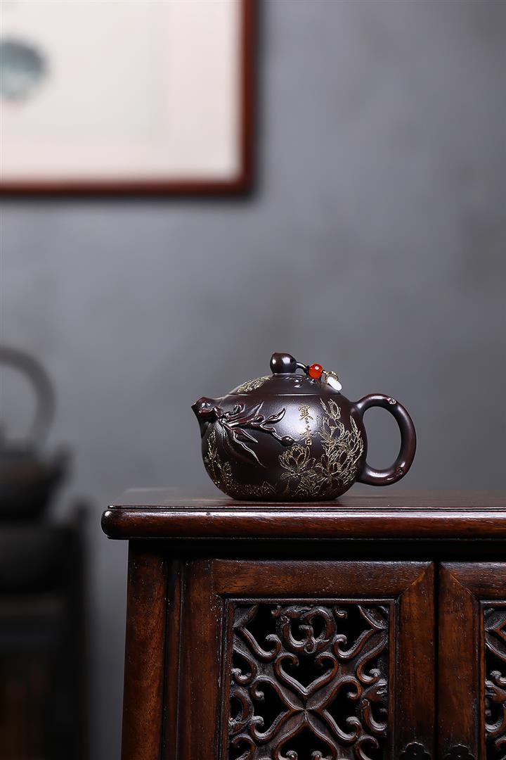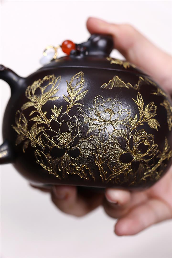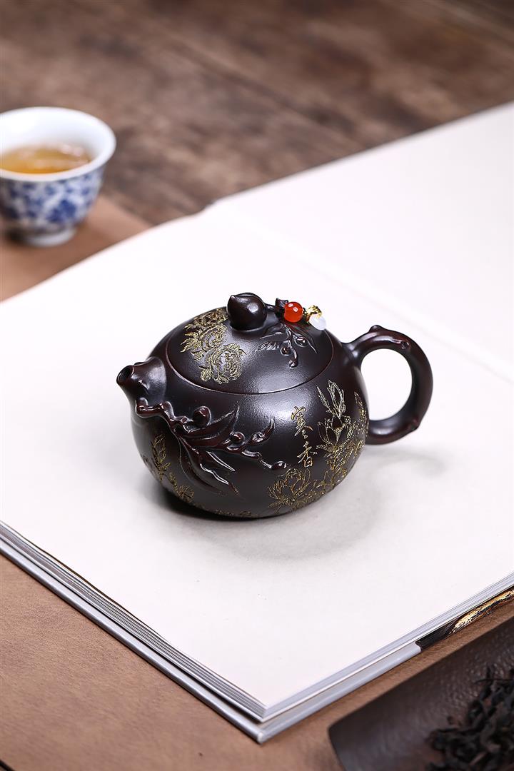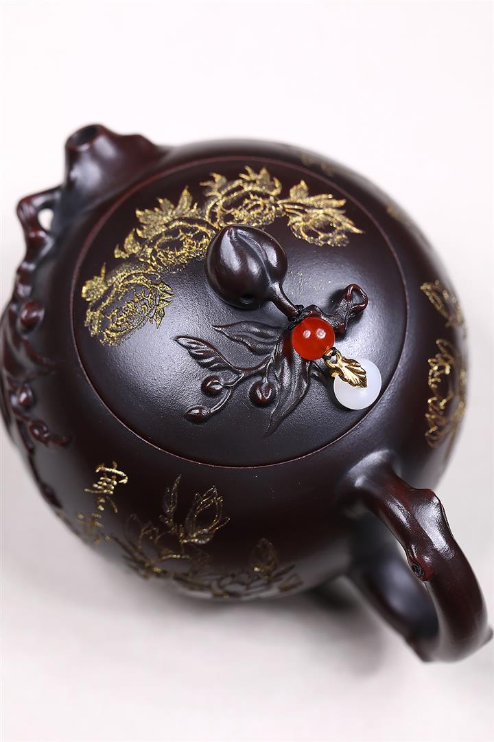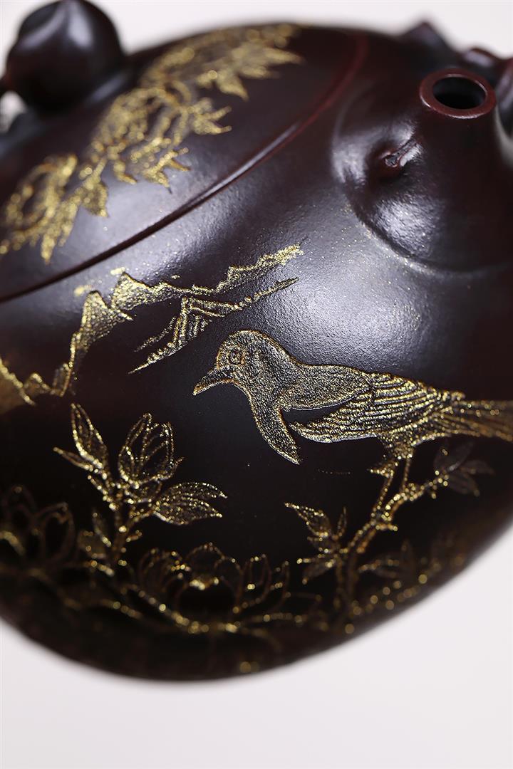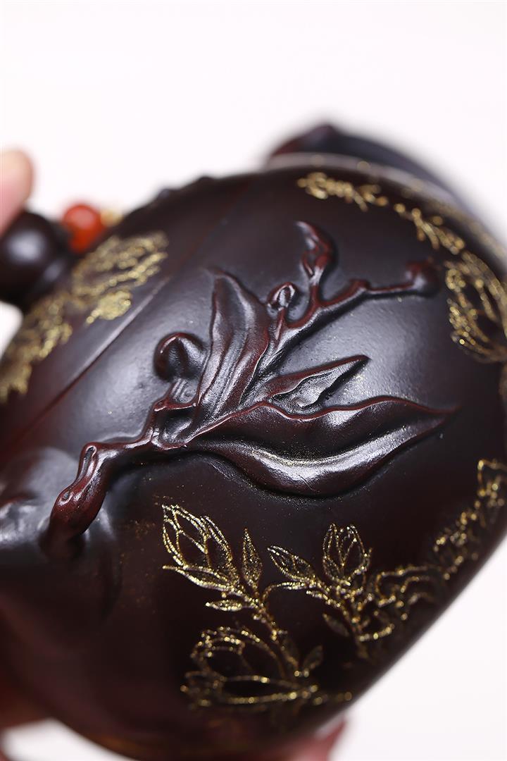 原礦古紅泥金字觀山石瓢茶壺POT7819