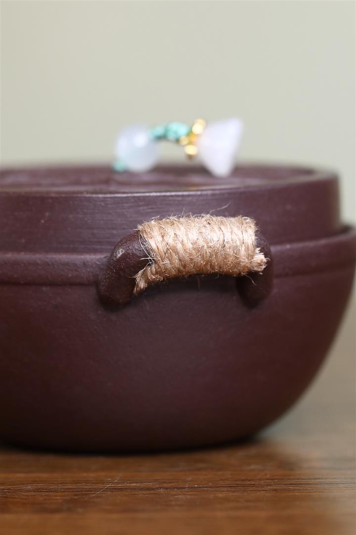 【泥料特點】砂土氣重,似淳實農民,日久使用,漸露鋒芒,養成變化,溫潤莊重。紫砂是壹種雙重氣孔結構的多孔性材質,氣孔微細,密度高。用紫砂壺沏茶,不失原味,且香不渙散,得茶之真香真味。紫砂使用越久,壺身色澤越發光亮照人,氣韻溫雅。紫砂壺長久使用器身會因撫摸擦拭,變得越發溫潤光澤。