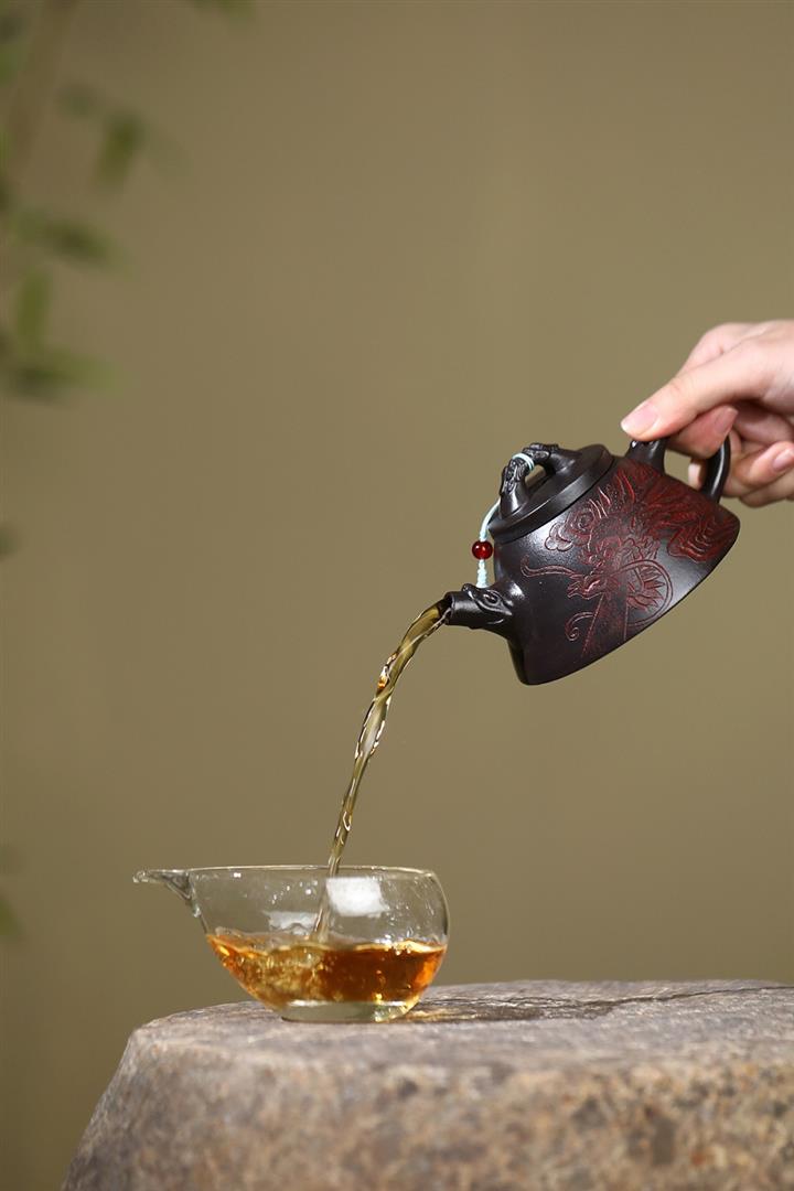 原礦大紅袍牡丹大口漢瓦茶壺POT7832