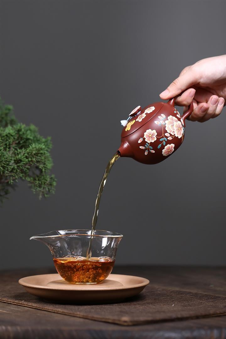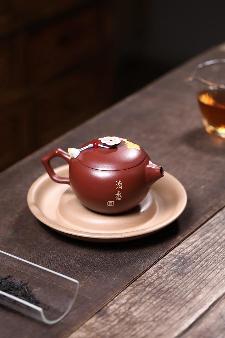 【泥料特點】砂土氣重,似淳實農民,日久使用,漸露鋒芒,養成變化,溫潤莊重。紫砂是壹種雙重氣孔結構的多孔性材質,氣孔微細,密度高。用紫砂壺沏茶,不失原味,且香不渙散,得茶之真香真味。紫砂使用越久,壺身色澤越發光亮照人,氣韻溫雅。紫砂壺長久使用器身會因撫摸擦拭,變得越發溫潤光澤。