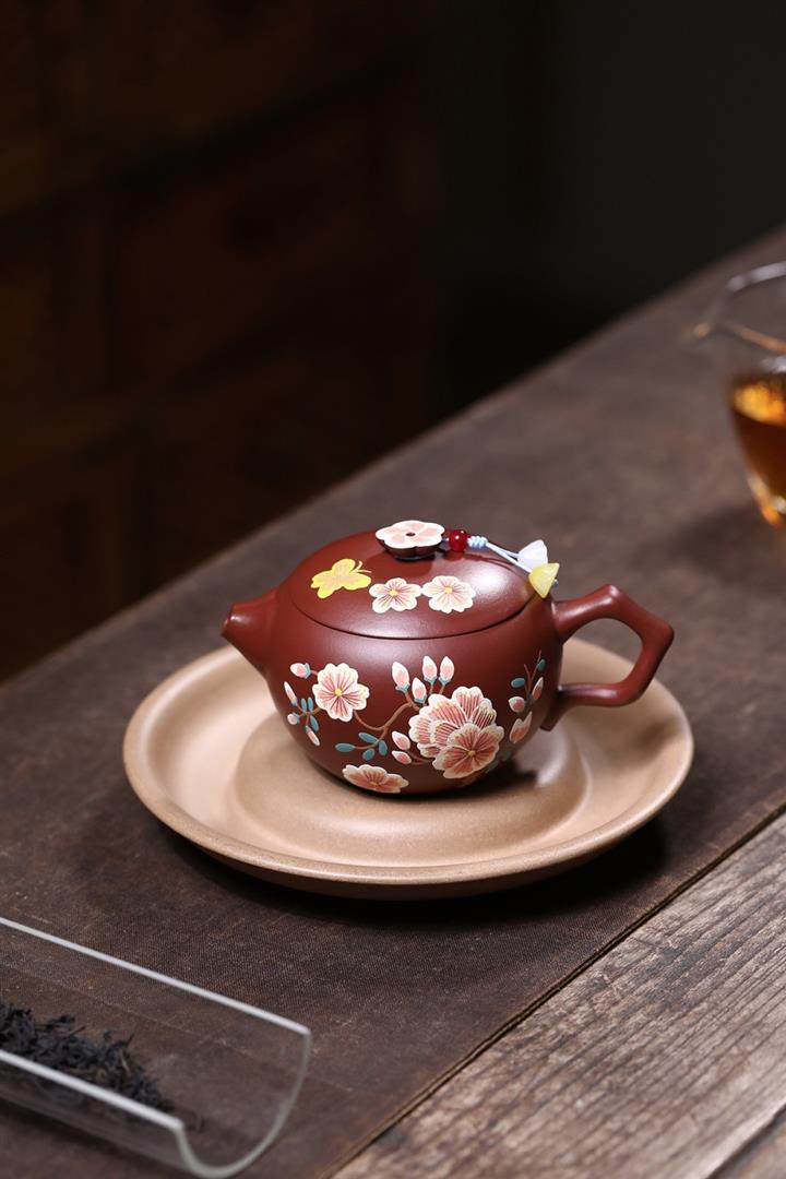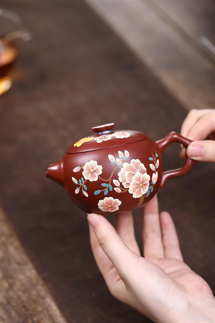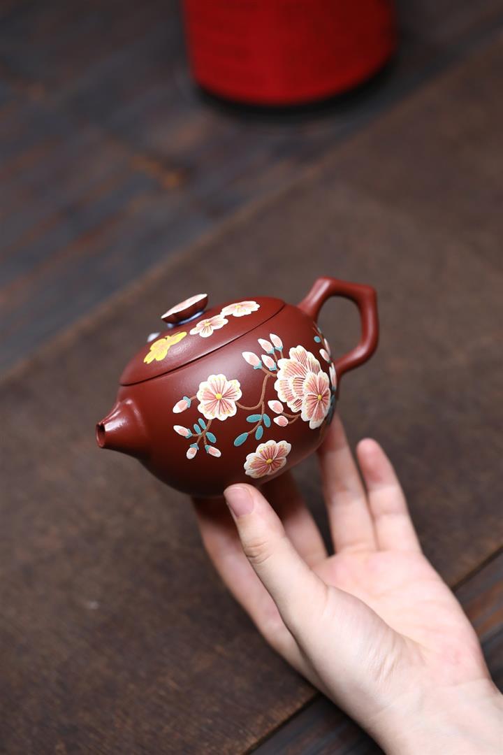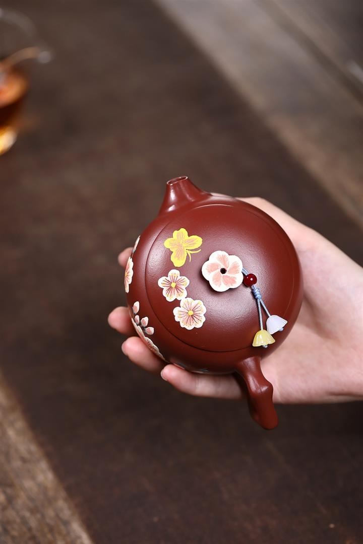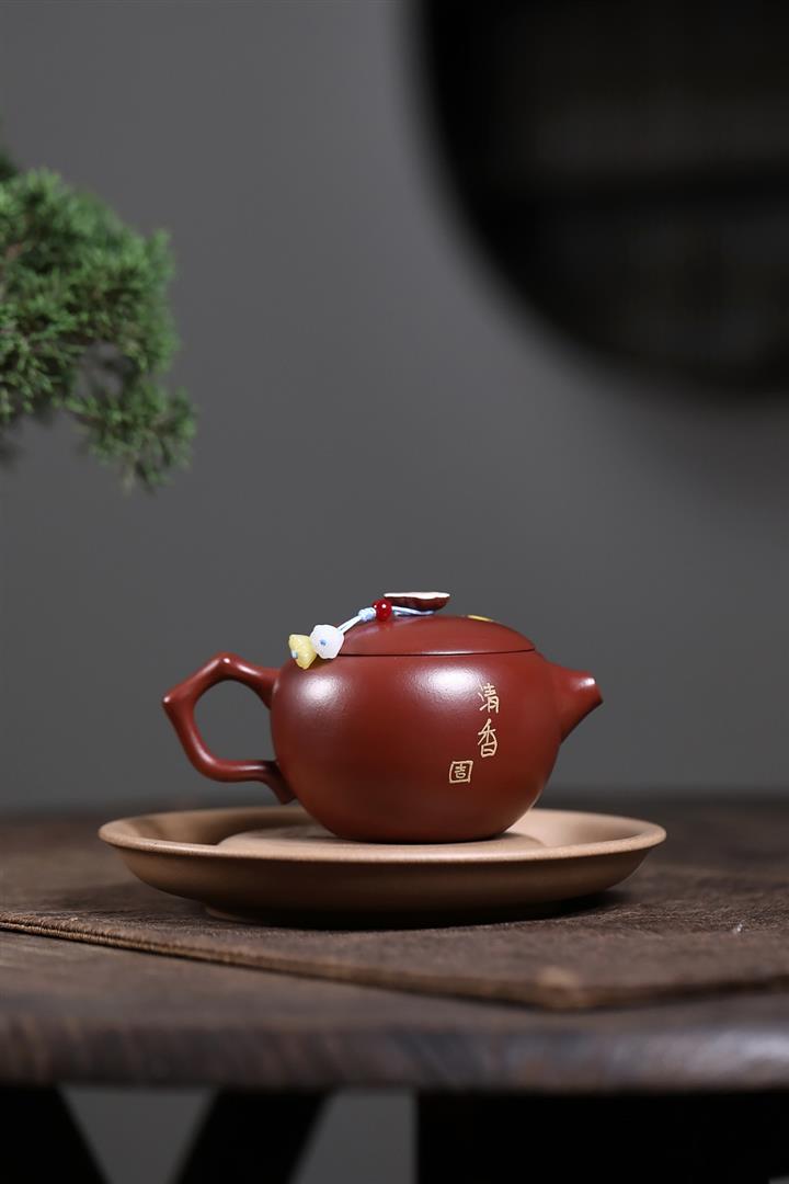 原礦大紅袍牡丹大口漢瓦茶壺POT7832
