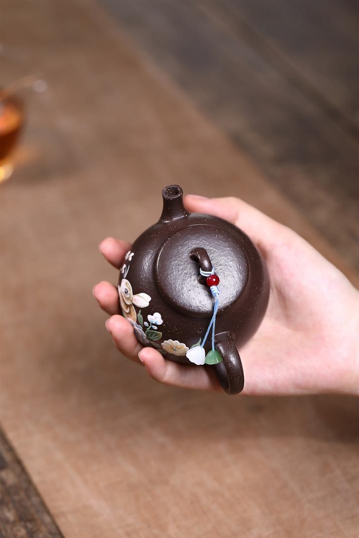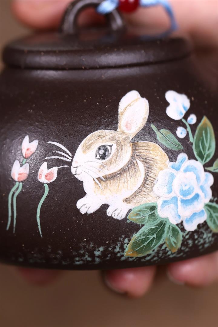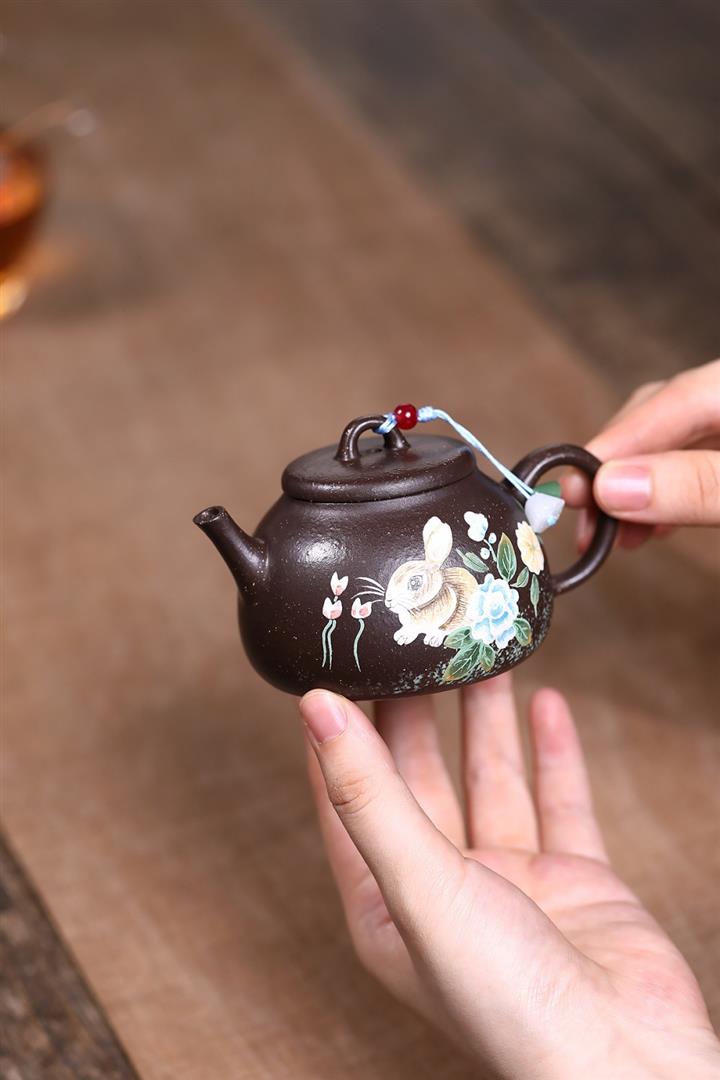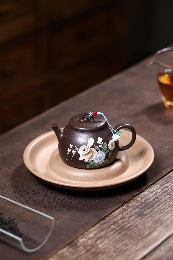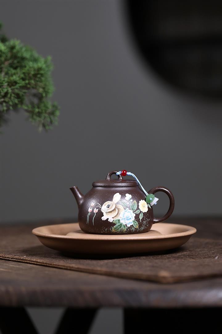 原礦紫玉金砂兔子圓瓦茶壺POT7837