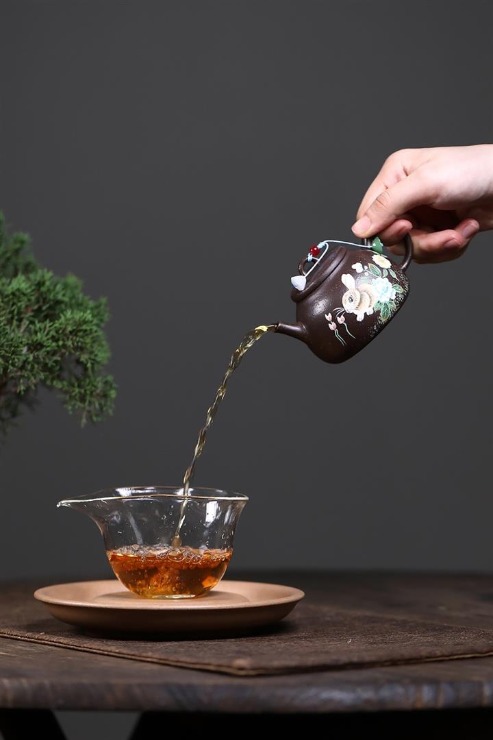 【泥料特點】砂土氣重,似淳實農民,日久使用,漸露鋒芒,養成變化,溫潤莊重。紫砂是壹種雙重氣孔結構的多孔性材質,氣孔微細,密度高。用紫砂壺沏茶,不失原味,且香不渙散,得茶之真香真味。紫砂使用越久,壺身色澤越發光亮照人,氣韻溫雅。紫砂壺長久使用器身會因撫摸擦拭,變得越發溫潤光澤。