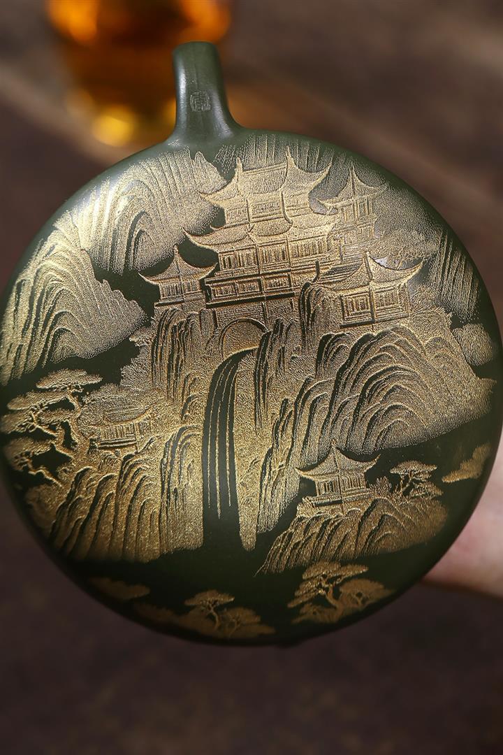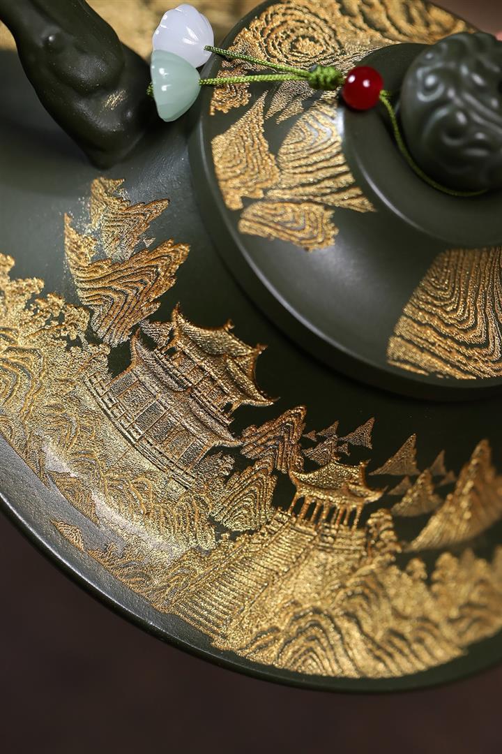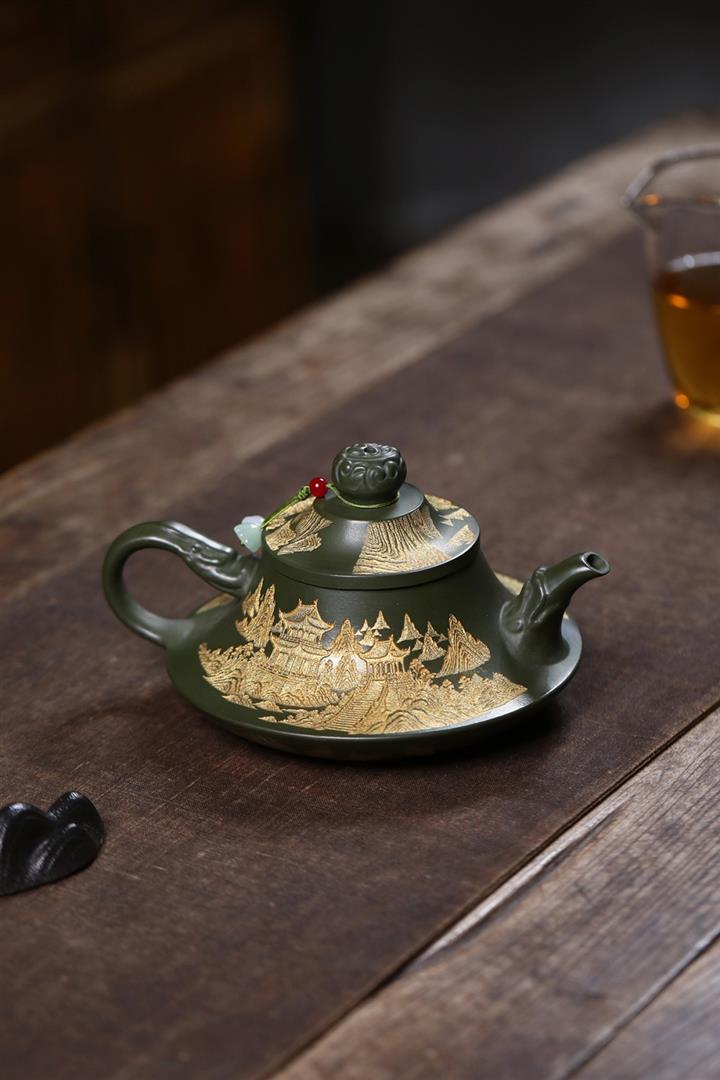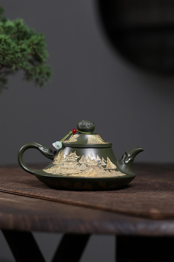 原礦綠泥千裏江山臥虎藏龍漢瓦壺POT7843