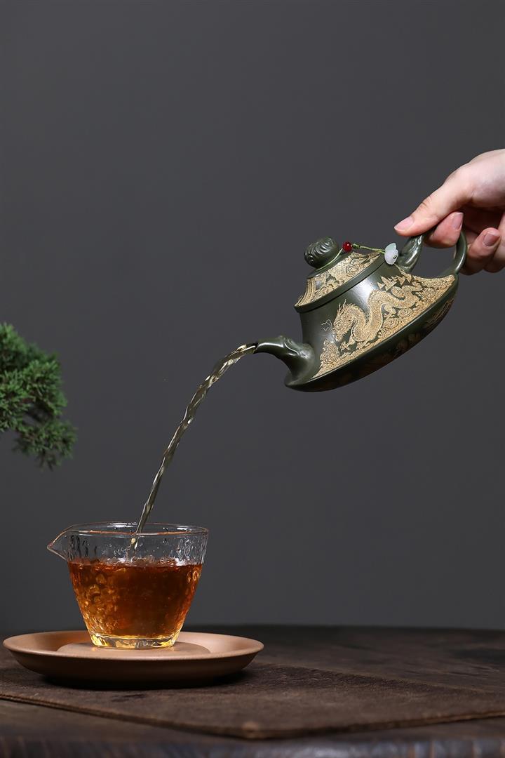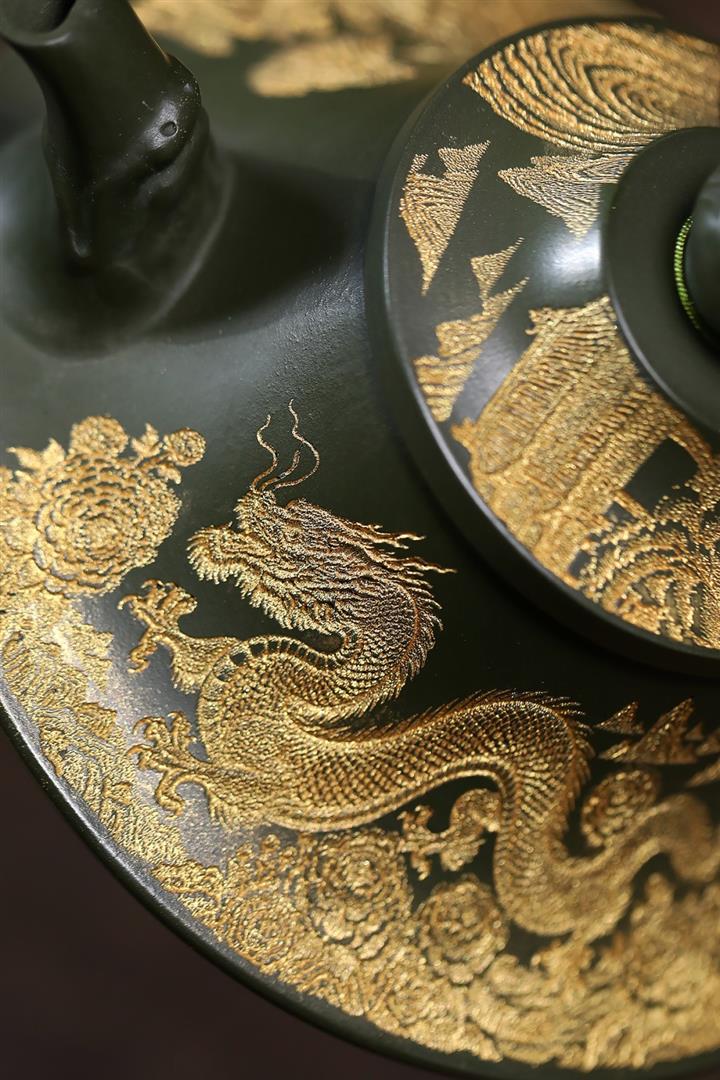 原礦墨綠泥龍鳳齊飛泡茶壺POT7845