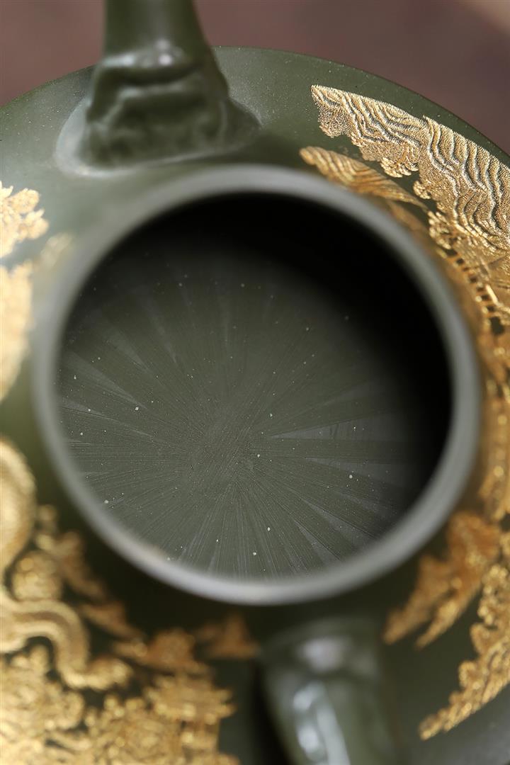 原礦綠泥臥虎藏龍內浮雕茶壺POT7844