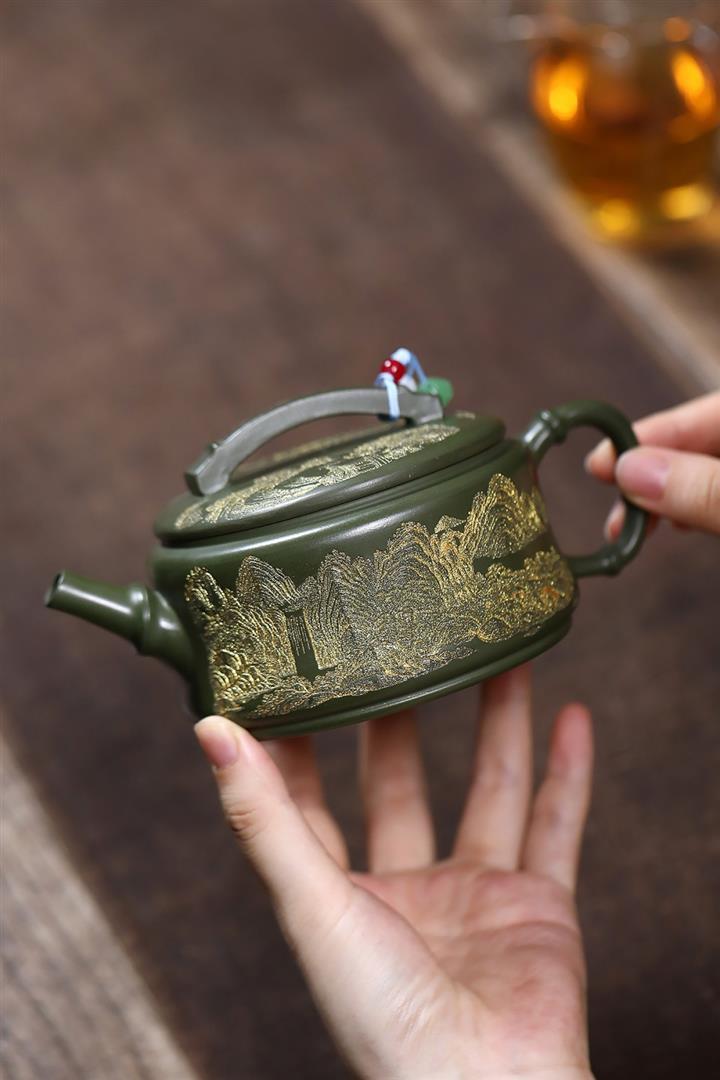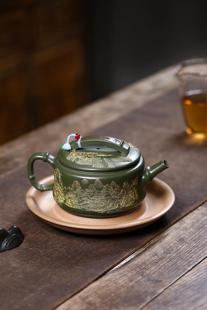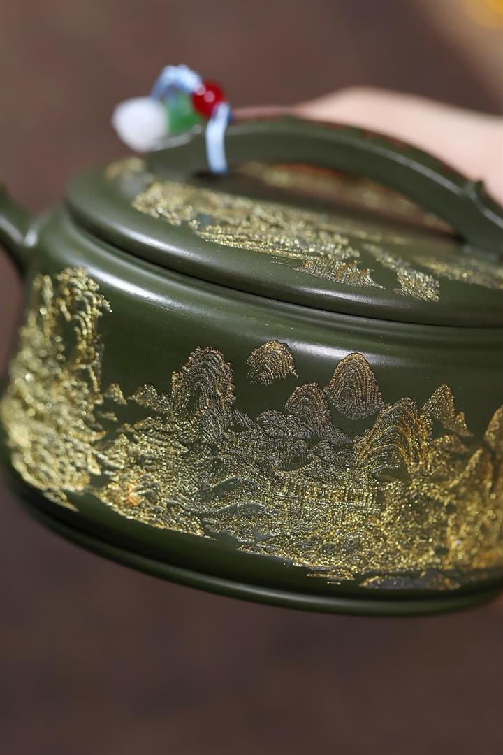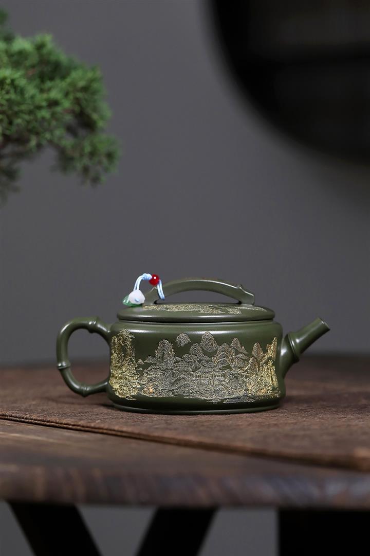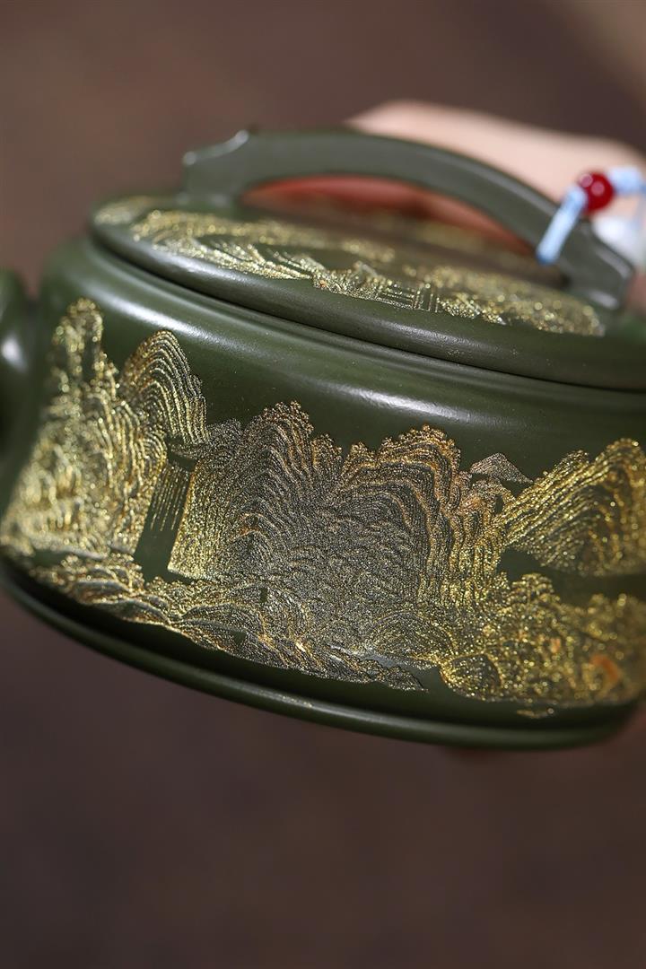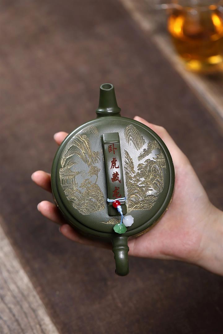 原礦綠泥千裏江山臥虎藏龍漢瓦壺POT7843
