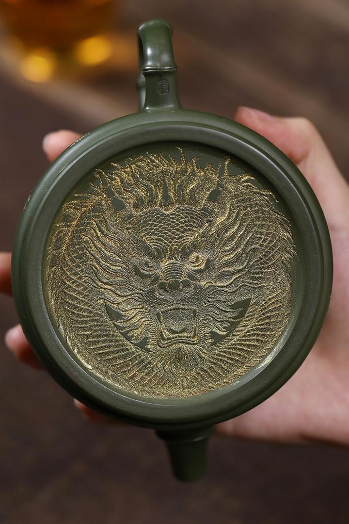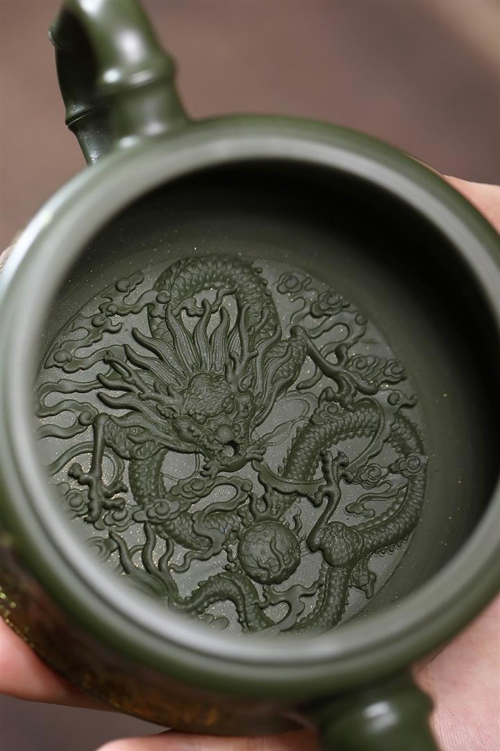 原礦綠泥臥虎藏龍內浮雕茶壺POT7844