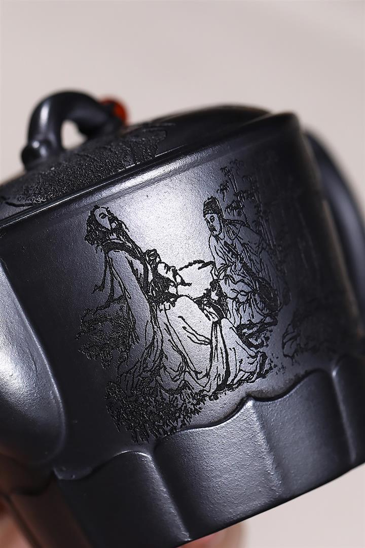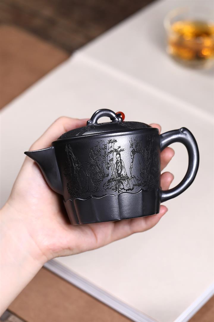 原礦段泥柴燒刻繪德鐘茶壺POT7864