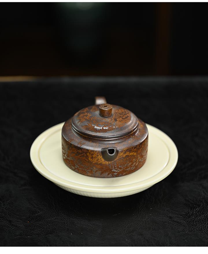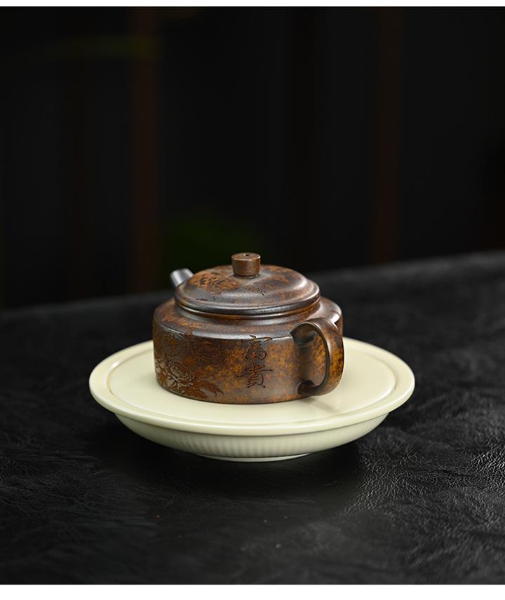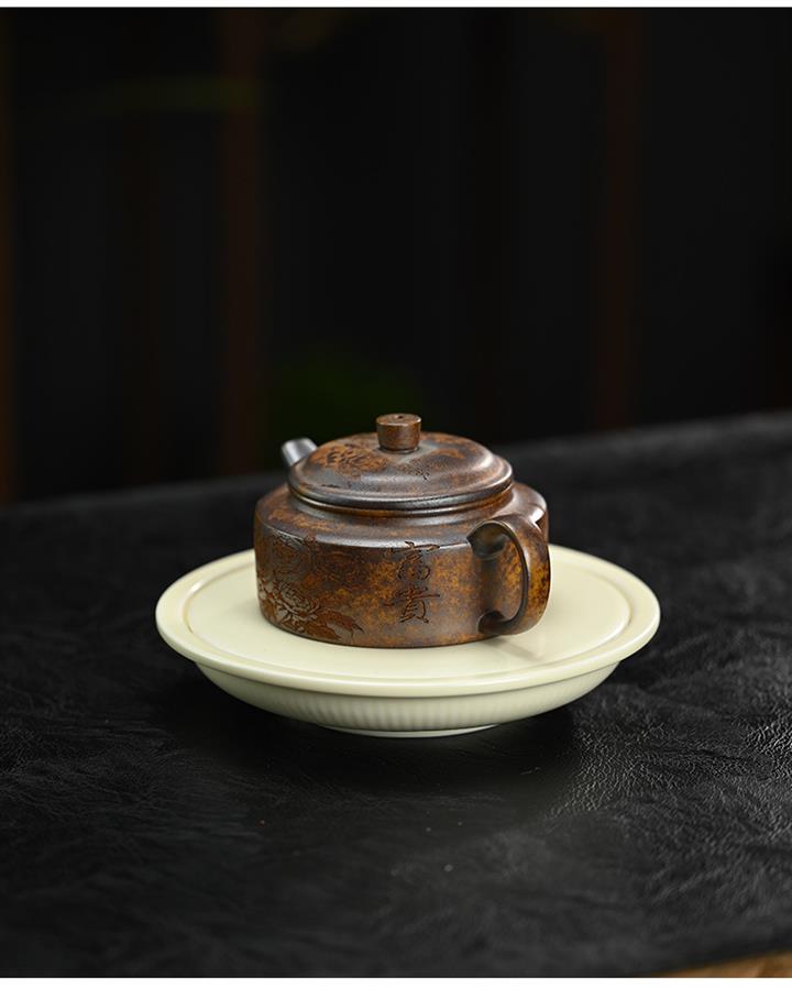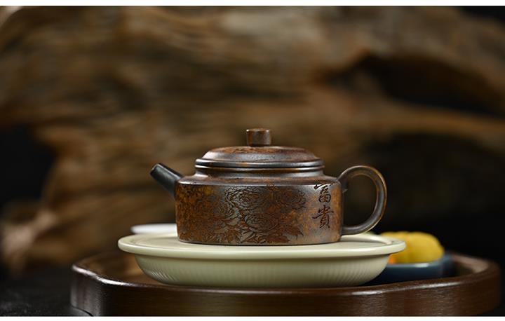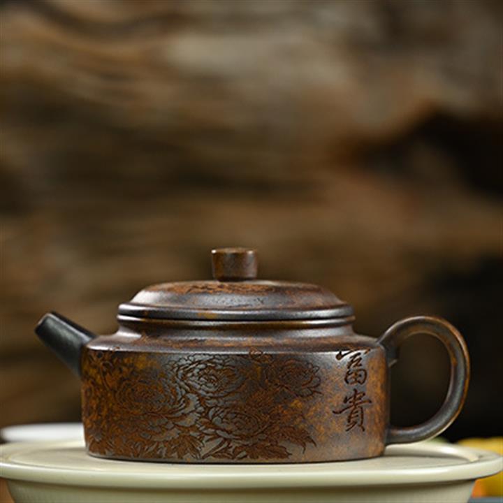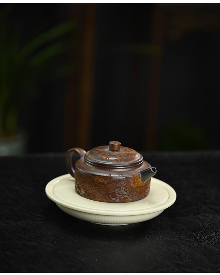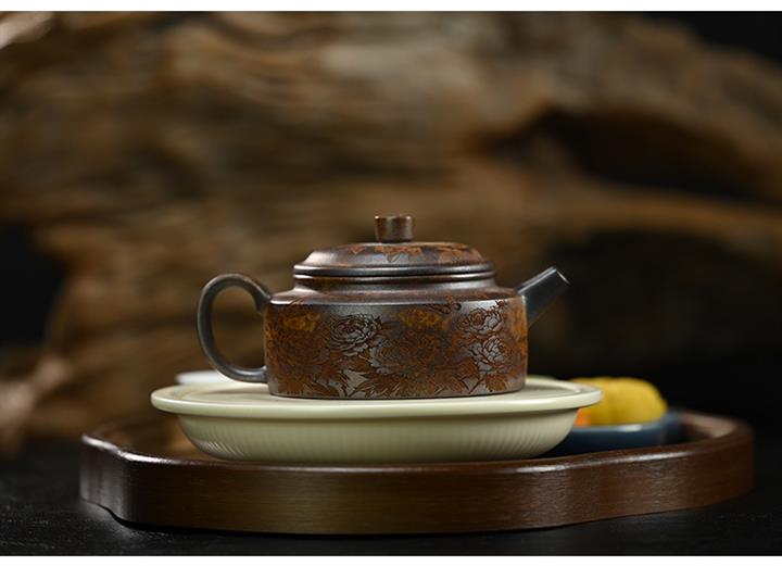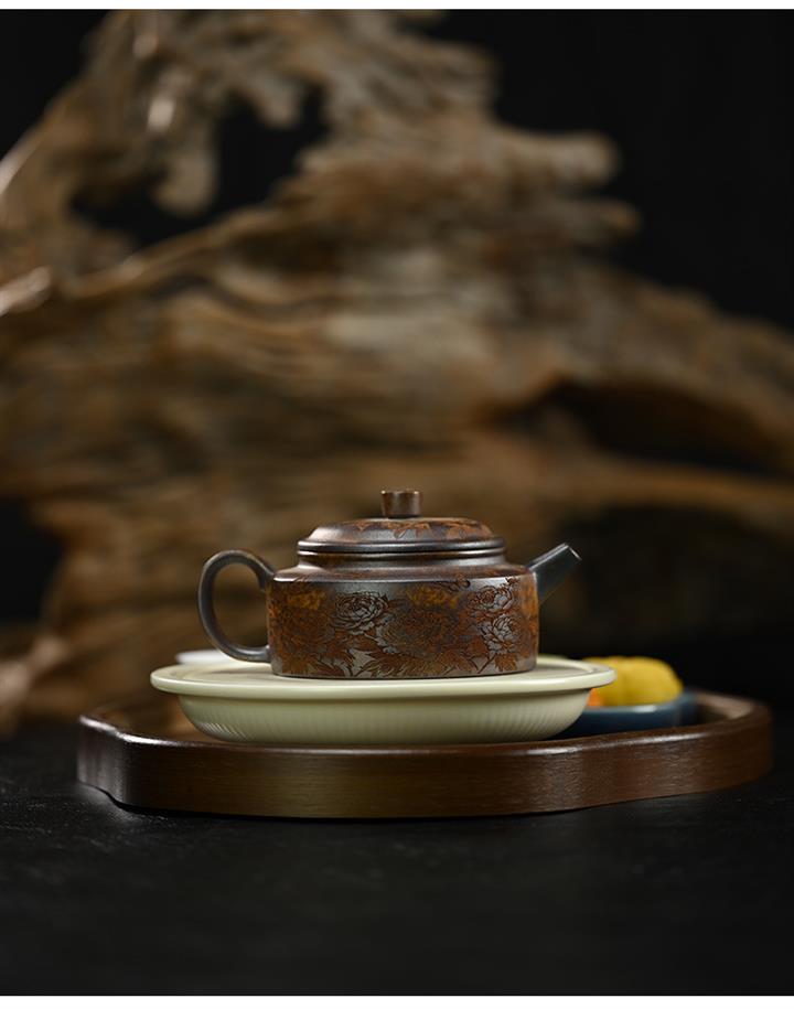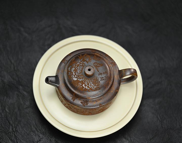 原礦段泥柴燒刻繪德鐘茶壺POT7864