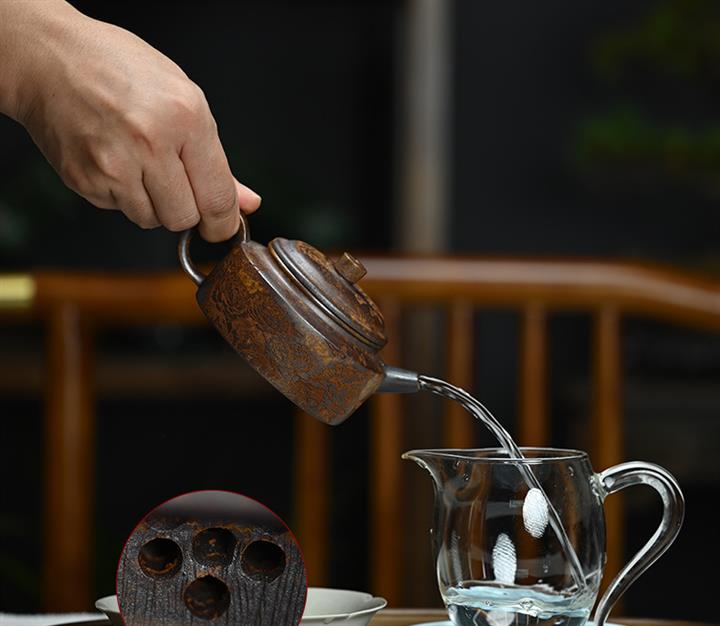 原礦龍血砂菱花如意茶壺POT7868