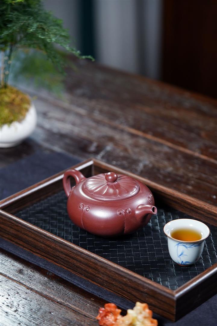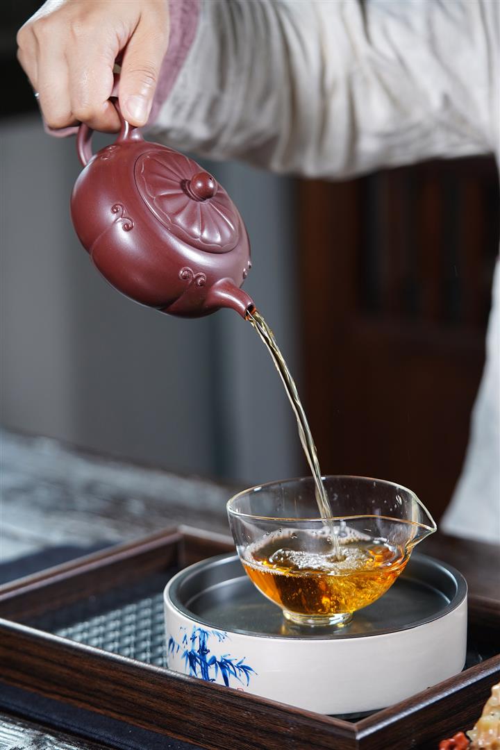 【泥料特點】砂土氣重,似淳實農民,日久使用,漸露鋒芒,養成變化,溫潤莊重。紫砂是壹種雙重氣孔結構的多孔性材質,氣孔微細,密度高。用紫砂壺沏茶,不失原味,且香不渙散,得茶之真香真味。紫砂使用越久,壺身色澤越發光亮照人,氣韻溫雅。紫砂壺長久使用器身會因撫摸擦拭,變得越發溫潤光澤。