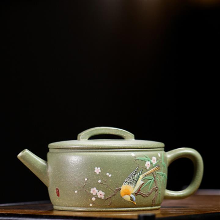 原礦豆青泥彩繪漢瓦茶壺POT7877