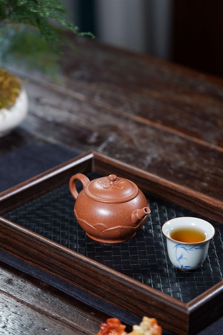【泥料特點】砂土氣重,似淳實農民,日久使用,漸露鋒芒,養成變化,溫潤莊重。紫砂是壹種雙重氣孔結構的多孔性材質,氣孔微細,密度高。用紫砂壺沏茶,不失原味,且香不渙散,得茶之真香真味。紫砂使用越久,壺身色澤越發光亮照人,氣韻溫雅。紫砂壺長久使用器身會因撫摸擦拭,變得越發溫潤光澤。