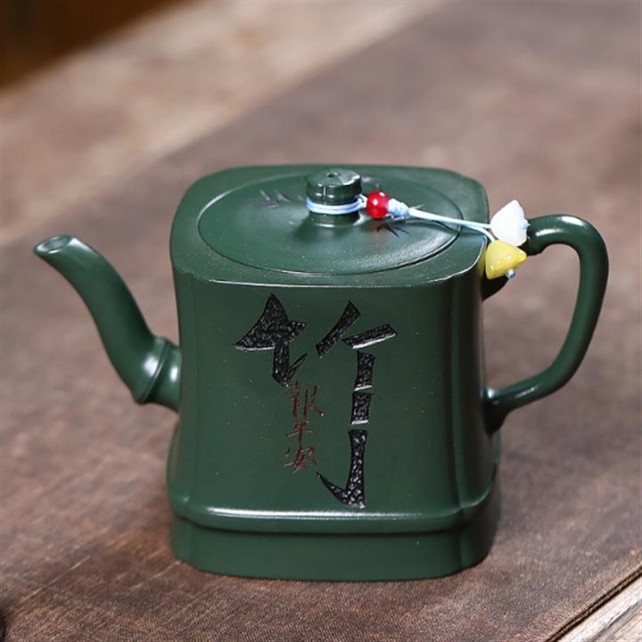 原礦綠泥琢砂竹報平安泡茶壺POT7879