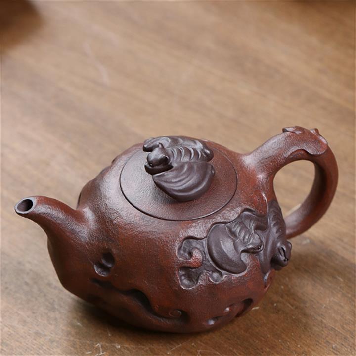 原礦紫泥雕塑福星高照茶壺POT7881