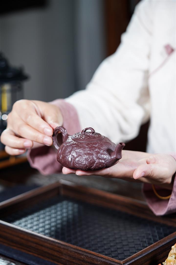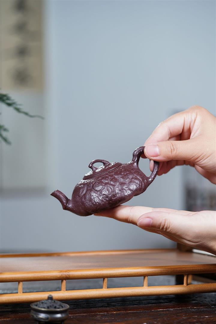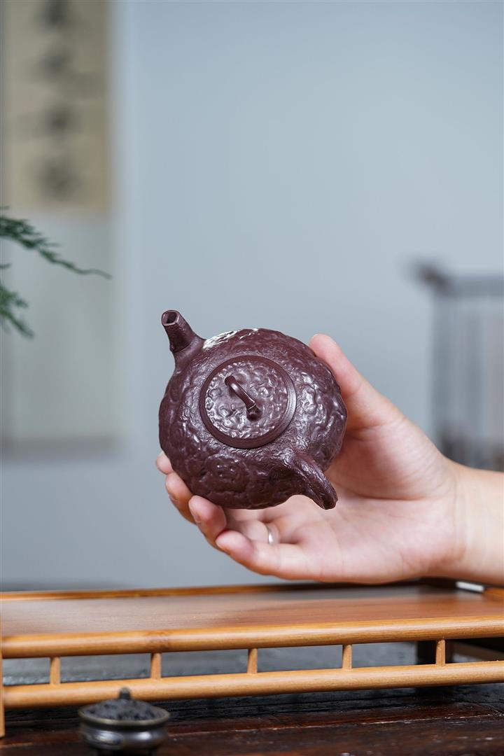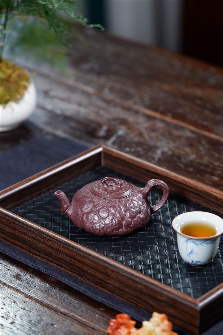 【泥料特點】砂土氣重,似淳實農民,日久使用,漸露鋒芒,養成變化,溫潤莊重。紫砂是壹種雙重氣孔結構的多孔性材質,氣孔微細,密度高。用紫砂壺沏茶,不失原味,且香不渙散,得茶之真香真味。紫砂使用越久,壺身色澤越發光亮照人,氣韻溫雅。紫砂壺長久使用器身會因撫摸擦拭,變得越發溫潤光澤。