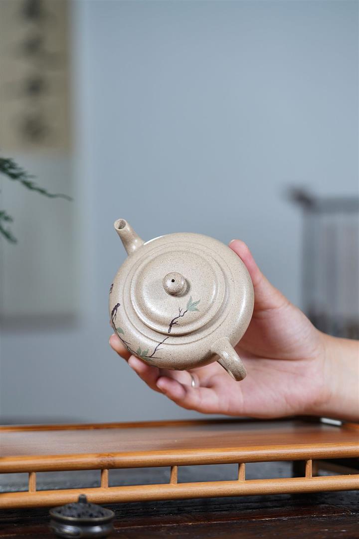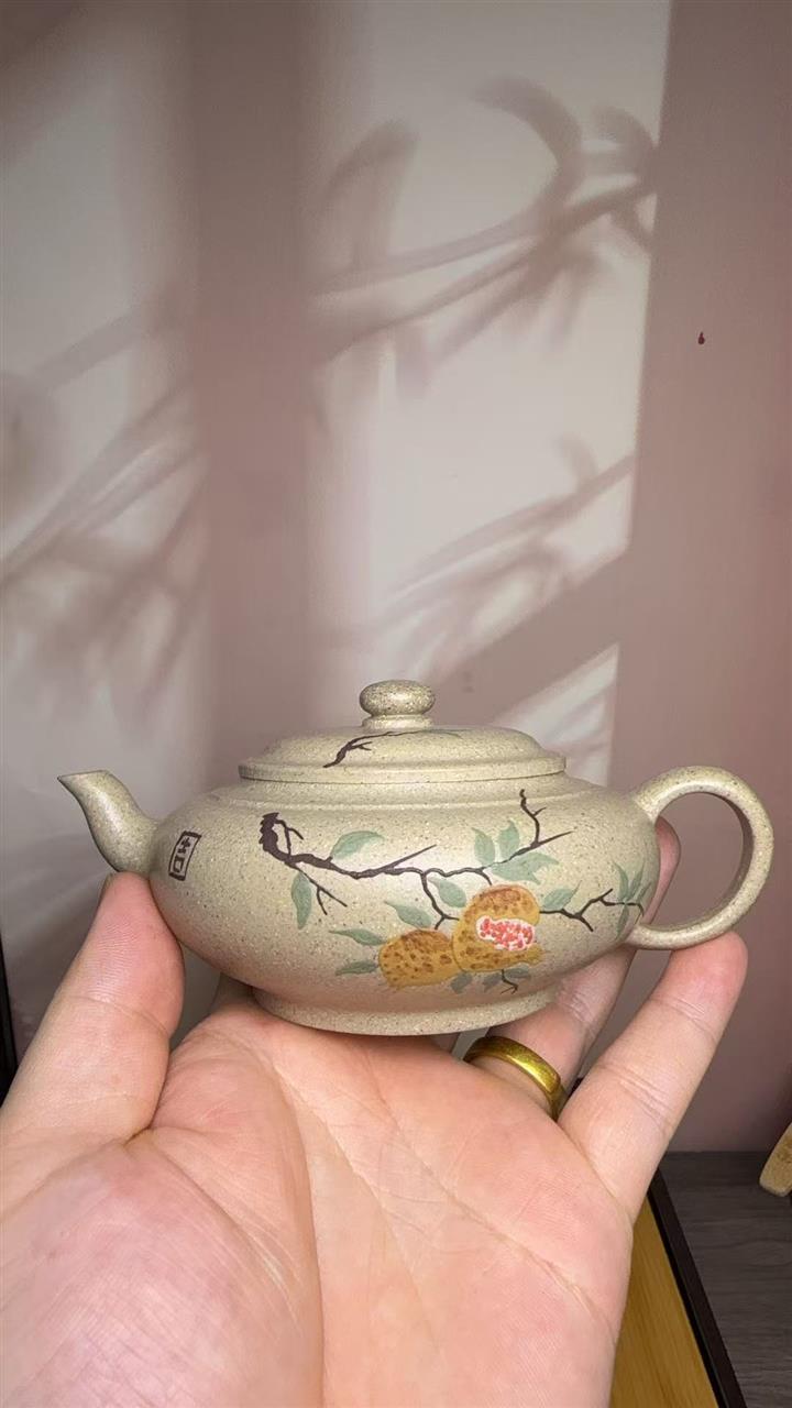 原礦豆青泥彩繪漢瓦茶壺POT7877