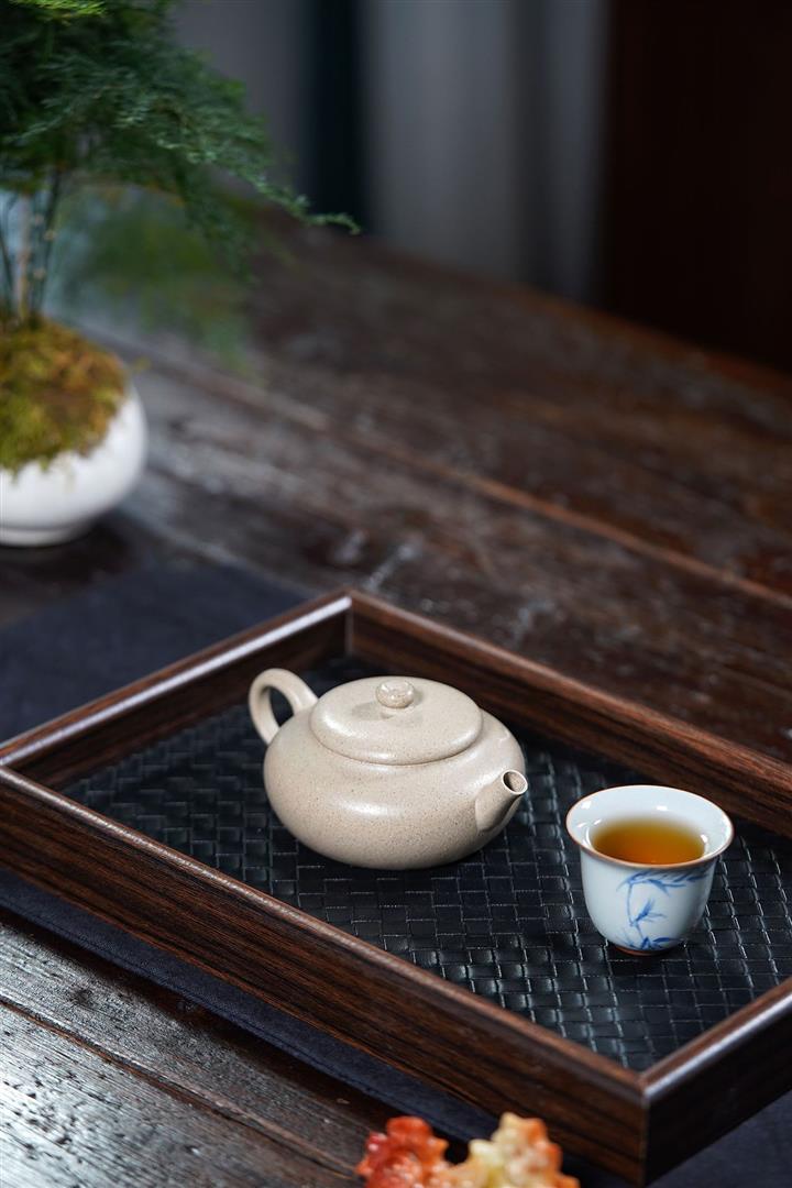 【泥料特點】砂土氣重,似淳實農民,日久使用,漸露鋒芒,養成變化,溫潤莊重。紫砂是壹種雙重氣孔結構的多孔性材質,氣孔微細,密度高。用紫砂壺沏茶,不失原味,且香不渙散,得茶之真香真味。紫砂使用越久,壺身色澤越發光亮照人,氣韻溫雅。紫砂壺長久使用器身會因撫摸擦拭,變得越發溫潤光澤。