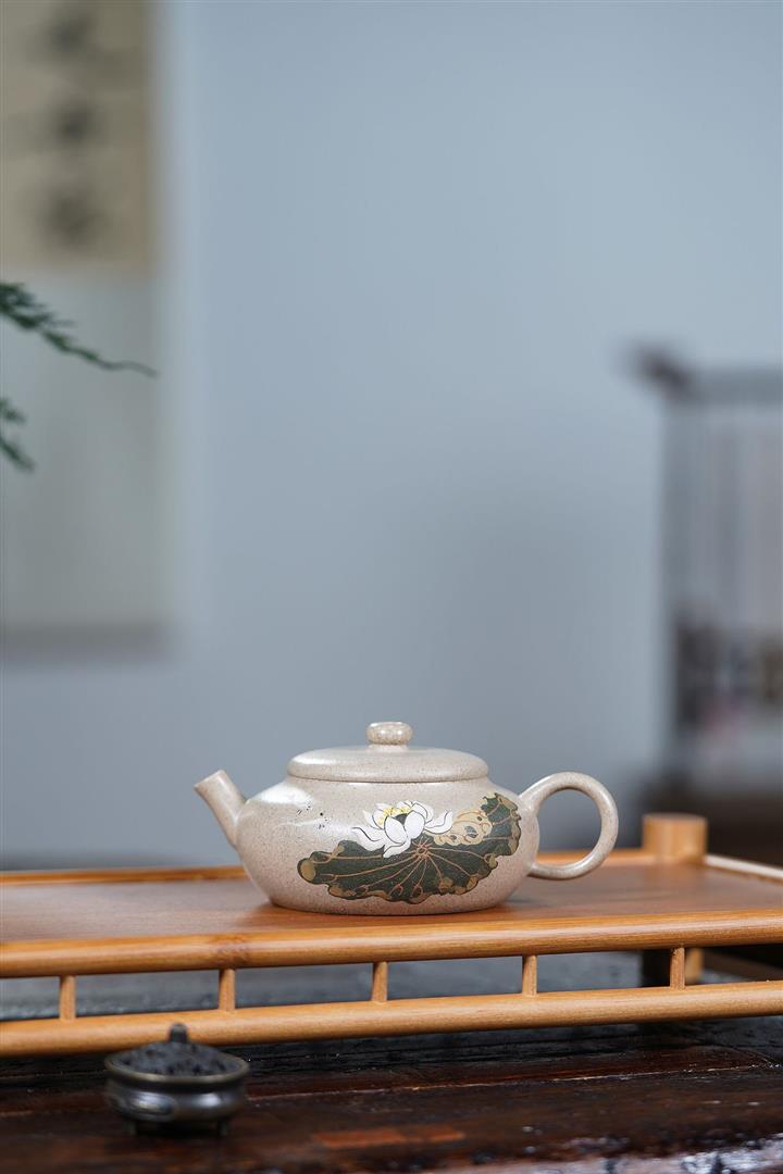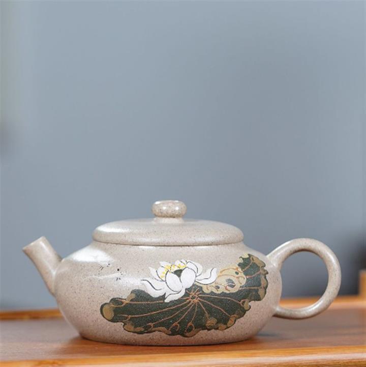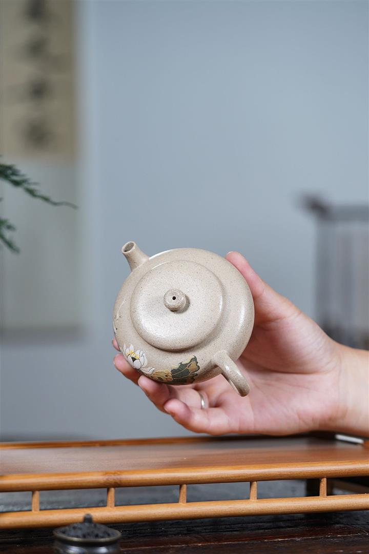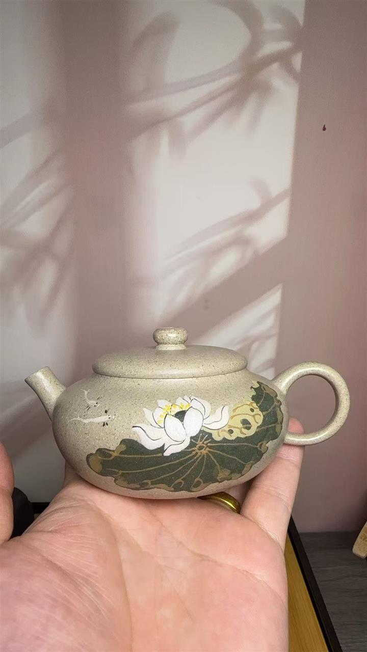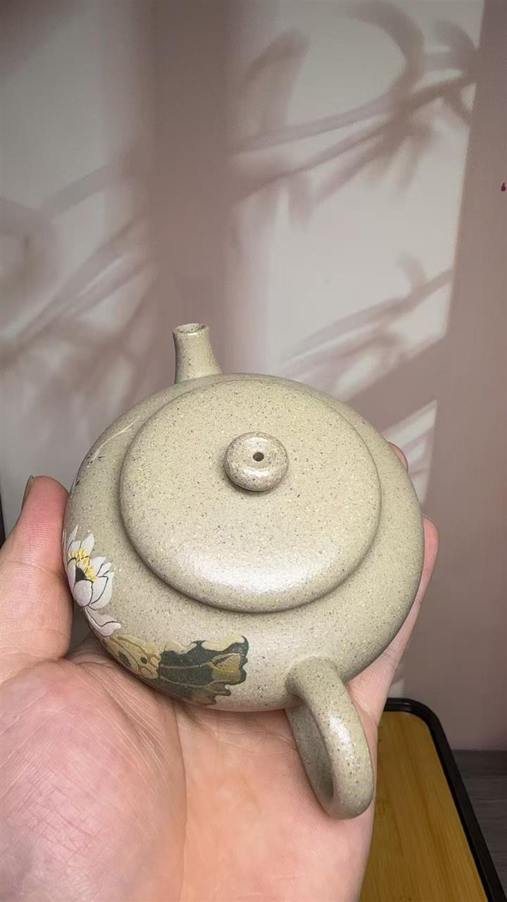 原礦豆青泥彩繪漢瓦茶壺POT7877