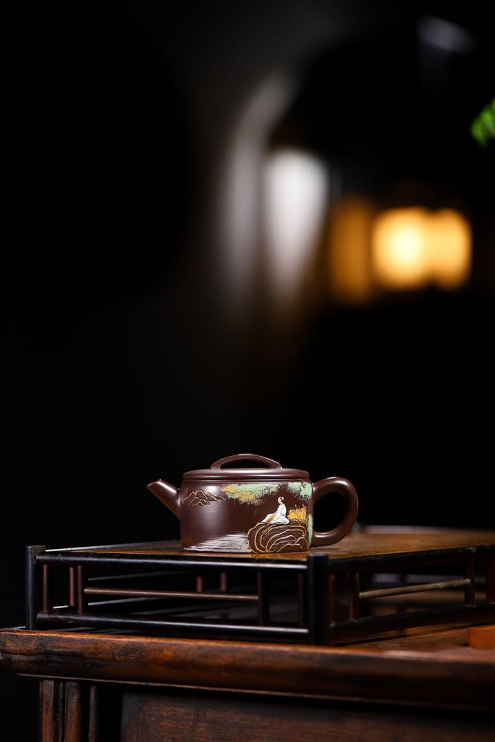 原礦紫泥雕塑福星高照茶壺POT7881