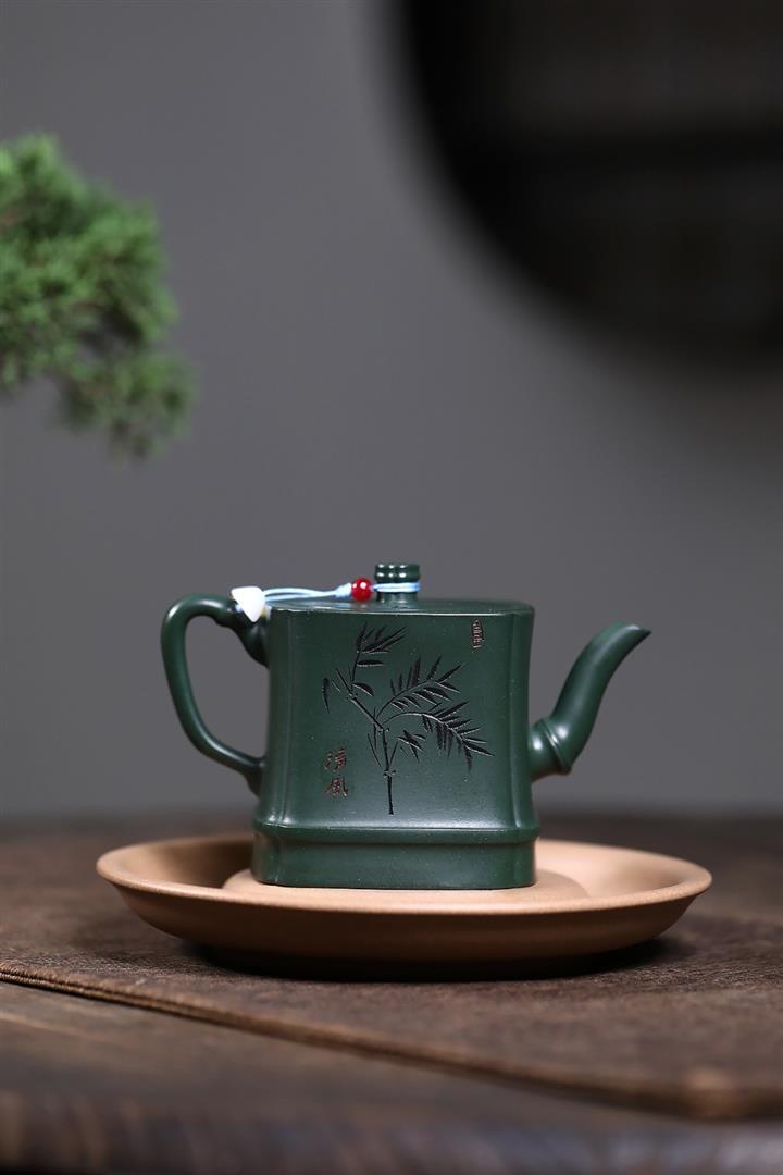 原礦綠泥琢砂竹報平安泡茶壺POT7879