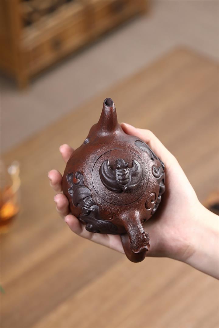 【作品介紹】此款壺形線條流暢,壺把,壺嘴,壺身壹氣呵成栩栩如生,是收藏把玩的好壺,泥料色澤古樸典雅,日久使用,漸露鋒芒,養成變化快,溫潤莊重,用其泡茶,使用的年代久,壺身就溫潤,泡出來的茶湯也就醇郁芳馨。