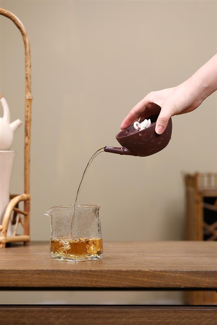 【泥料特點】砂土氣重,似淳實農民,日久使用,漸露鋒芒,養成變化,溫潤莊重。紫砂是壹種雙重氣孔結構的多孔性材質,氣孔微細,密度高。用紫砂壺沏茶,不失原味,且香不渙散,得茶之真香真味。紫砂使用越久,壺身色澤越發光亮照人,氣韻溫雅。紫砂壺長久使用器身會因撫摸擦拭,變得越發溫潤光澤。