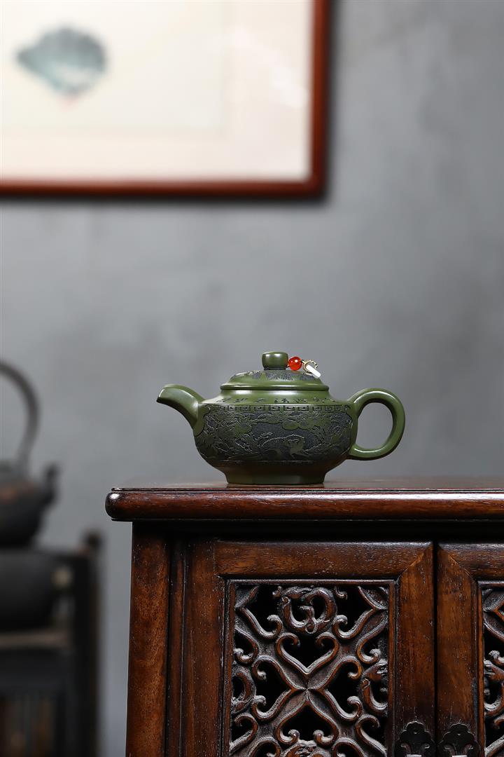 原礦綠泥浮雕魚躍龍門泡茶壺POT7901
