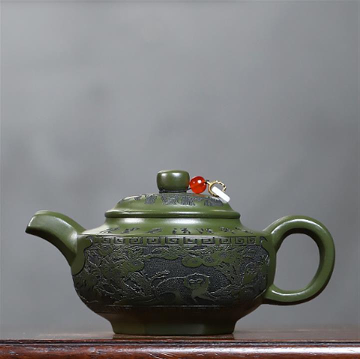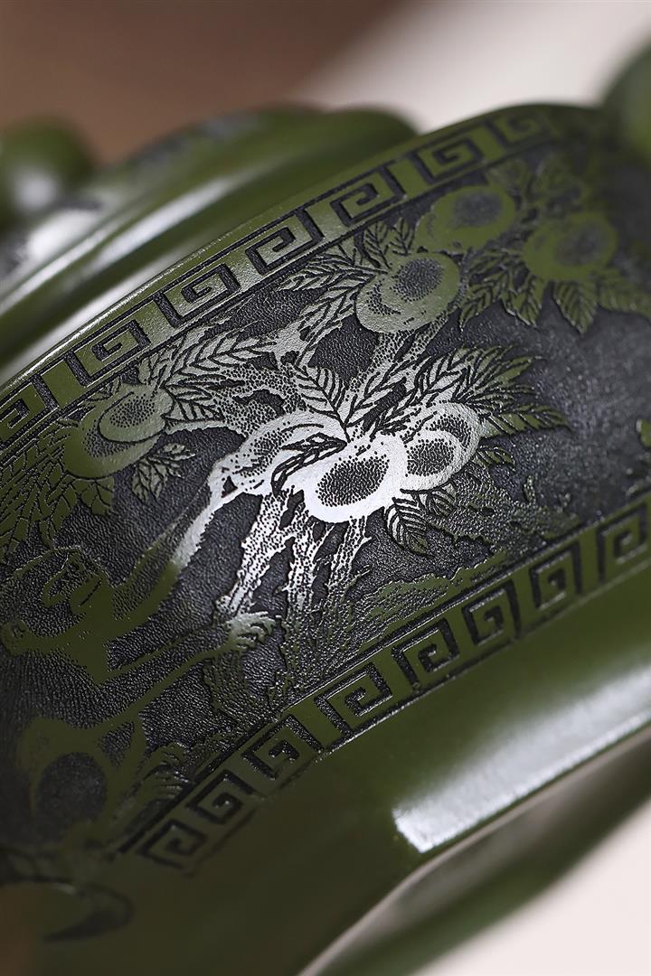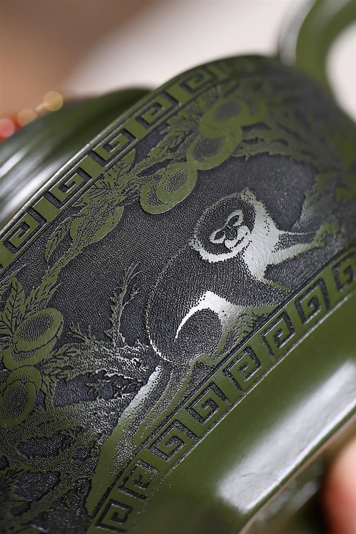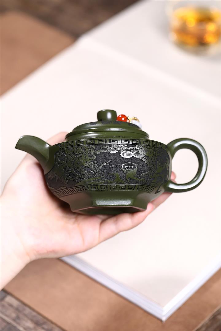 原礦綠泥靈猴獻桃泡茶壺POT7899