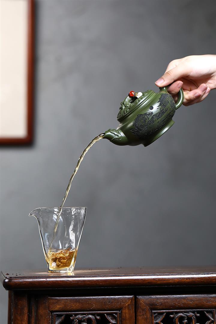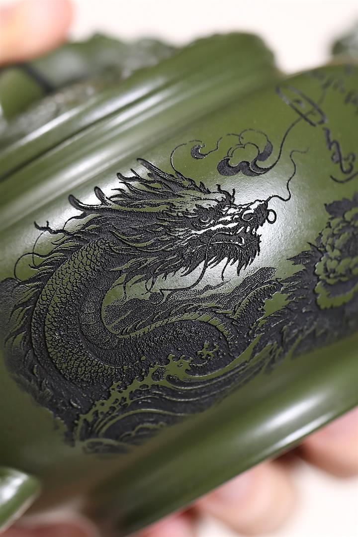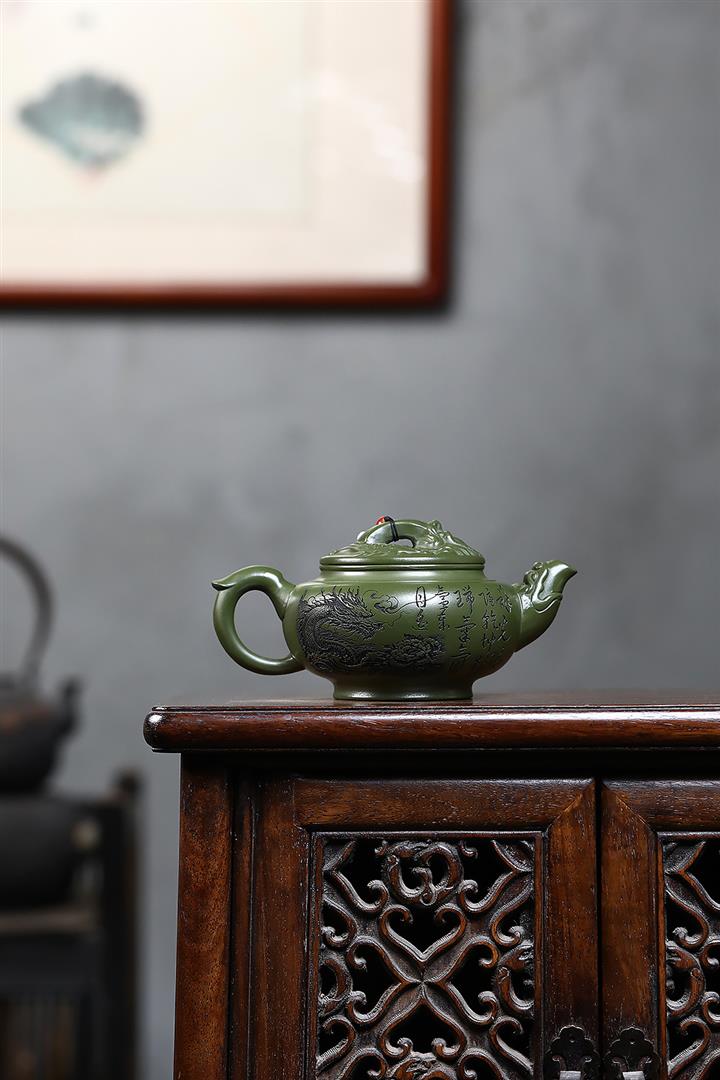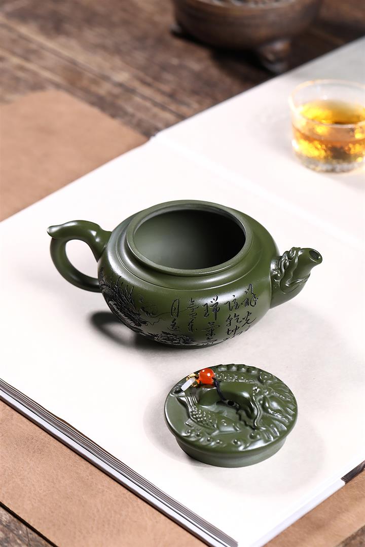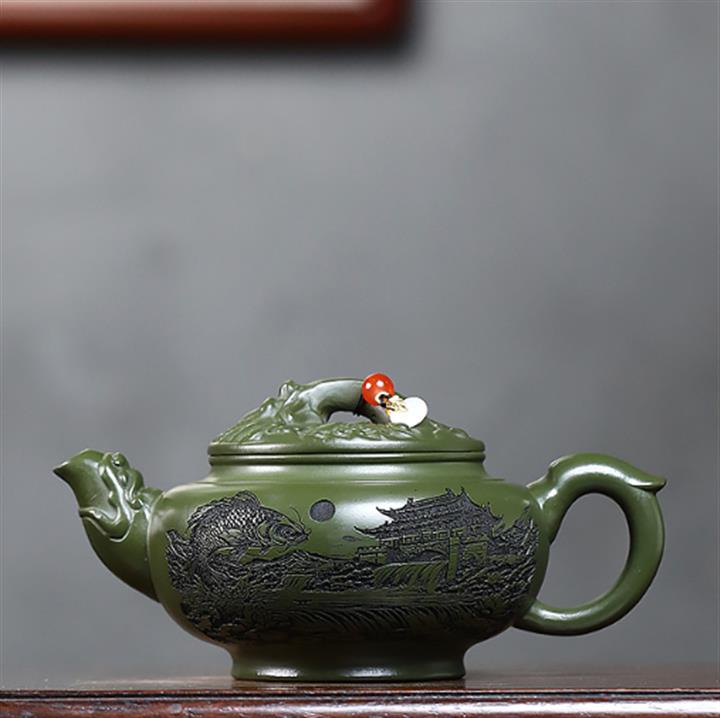原礦綠泥浮雕魚躍龍門泡茶壺POT7901
