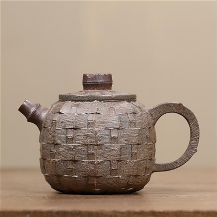 原礦段泥雕塑竹編茶壺POT7909