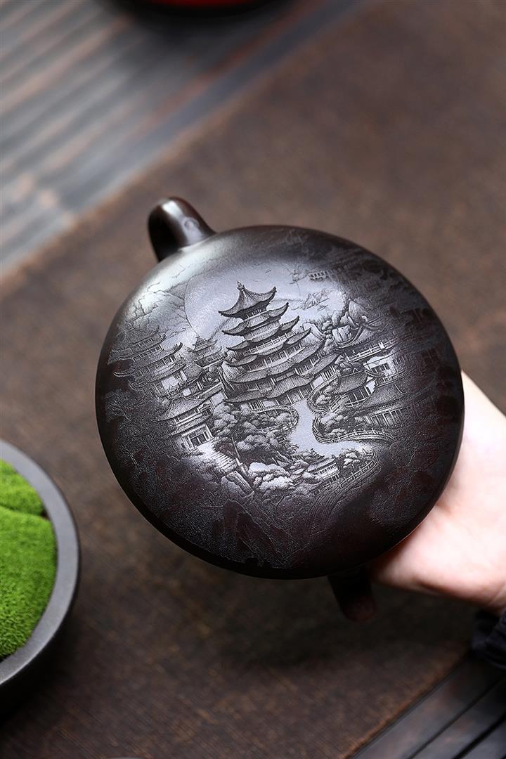 原礦紫泥仙鶴呈祥漢瓦茶壺POT7912