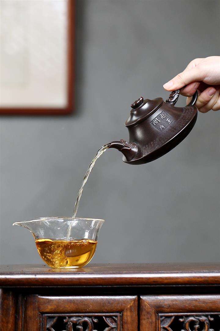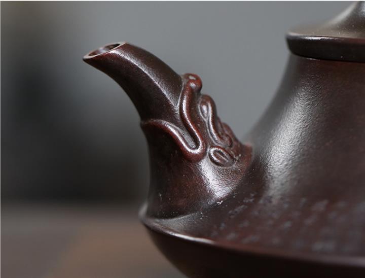 【作品介紹】此款壺形線條流暢,壺把,壺嘴,壺身壹氣呵成栩栩如生,是收藏把玩的好壺,泥料色澤古樸典雅,日久使用,漸露鋒芒,養成變化快,溫潤莊重,用其泡茶,使用的年代久,壺身就溫潤,泡出來的茶湯也就醇郁芳馨。