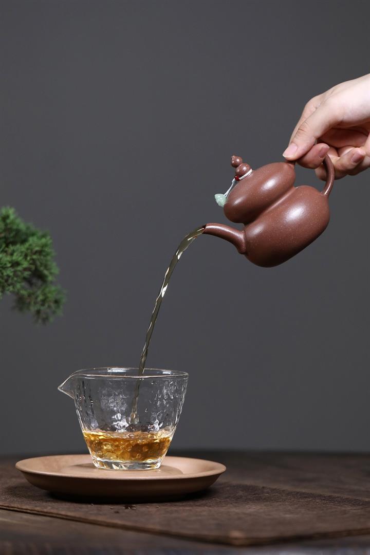 【泥料特點】砂土氣重,似淳實農民,日久使用,漸露鋒芒,養成變化,溫潤莊重。紫砂是壹種雙重氣孔結構的多孔性材質,氣孔微細,密度高。用紫砂壺沏茶,不失原味,且香不渙散,得茶之真香真味。紫砂使用越久,壺身色澤越發光亮照人,氣韻溫雅。紫砂壺長久使用器身會因撫摸擦拭,變得越發溫潤光澤。