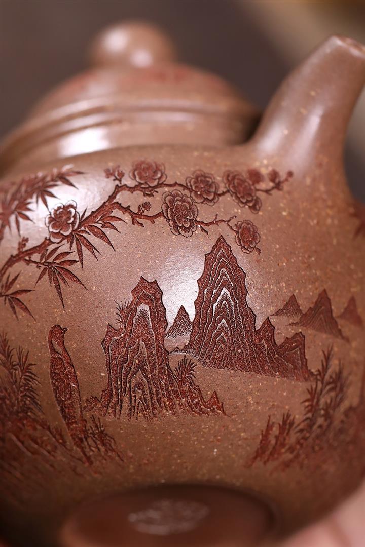 原礦紫泥山水樓閣井欄茶壺POT7916