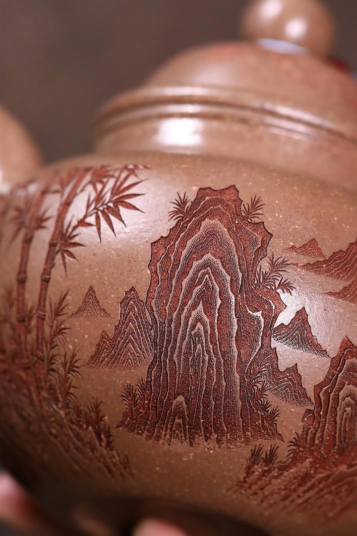 原礦粗砂段泥竹林意境茶壺POT7915