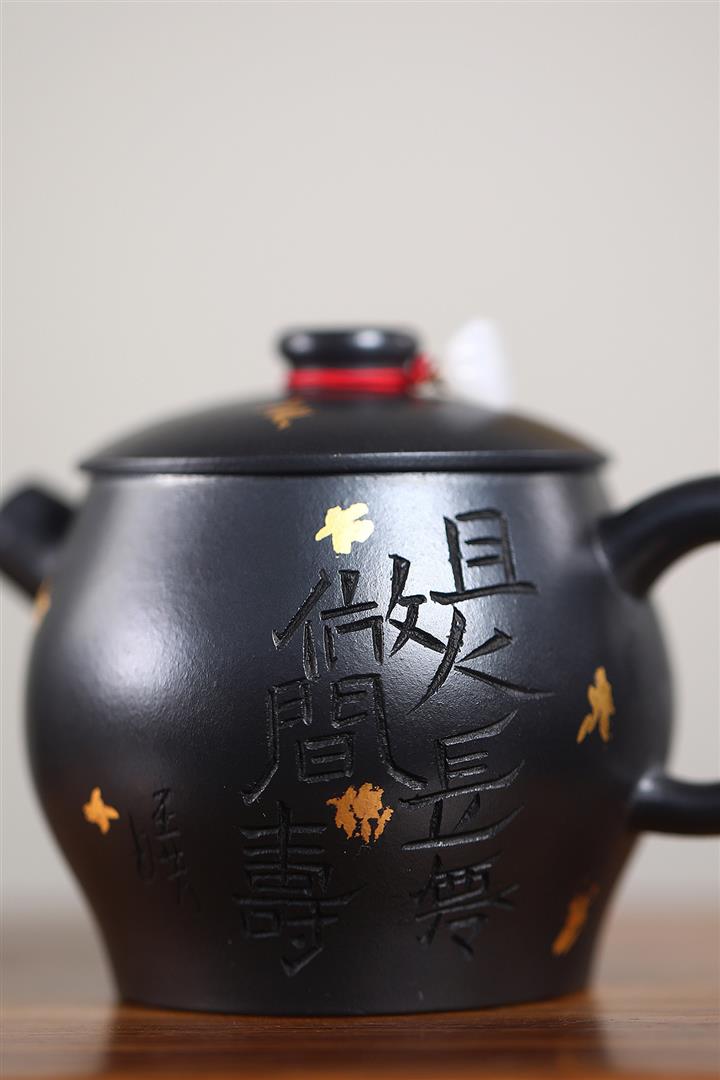 原礦石紅磁吸刻字巨輪茶壺POT7726