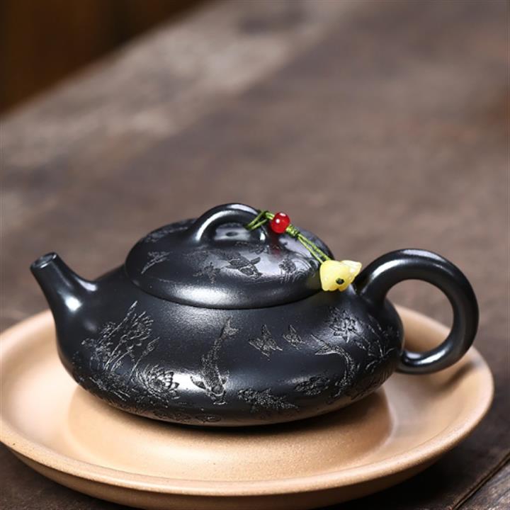 原礦石黃泥魚趣納瓢茶壺POT7717