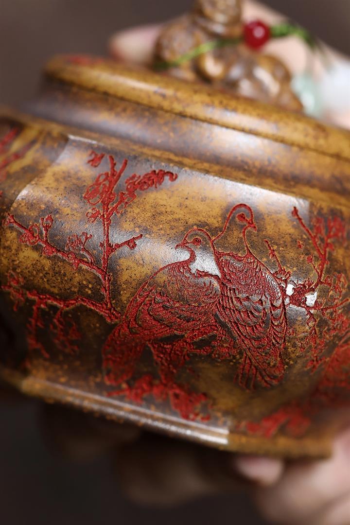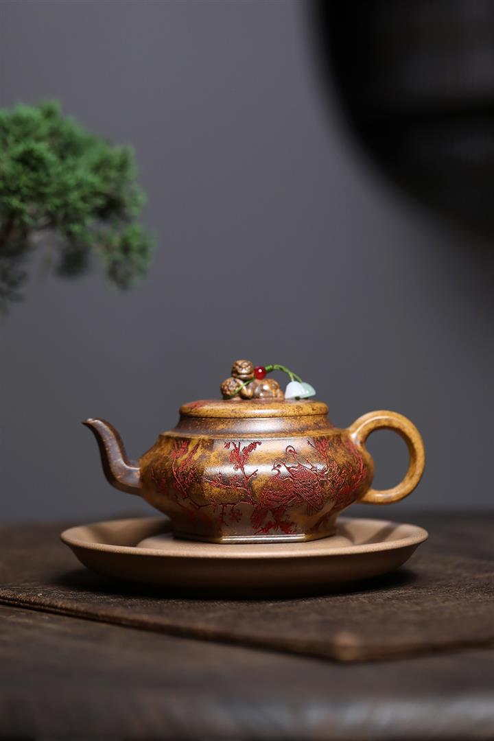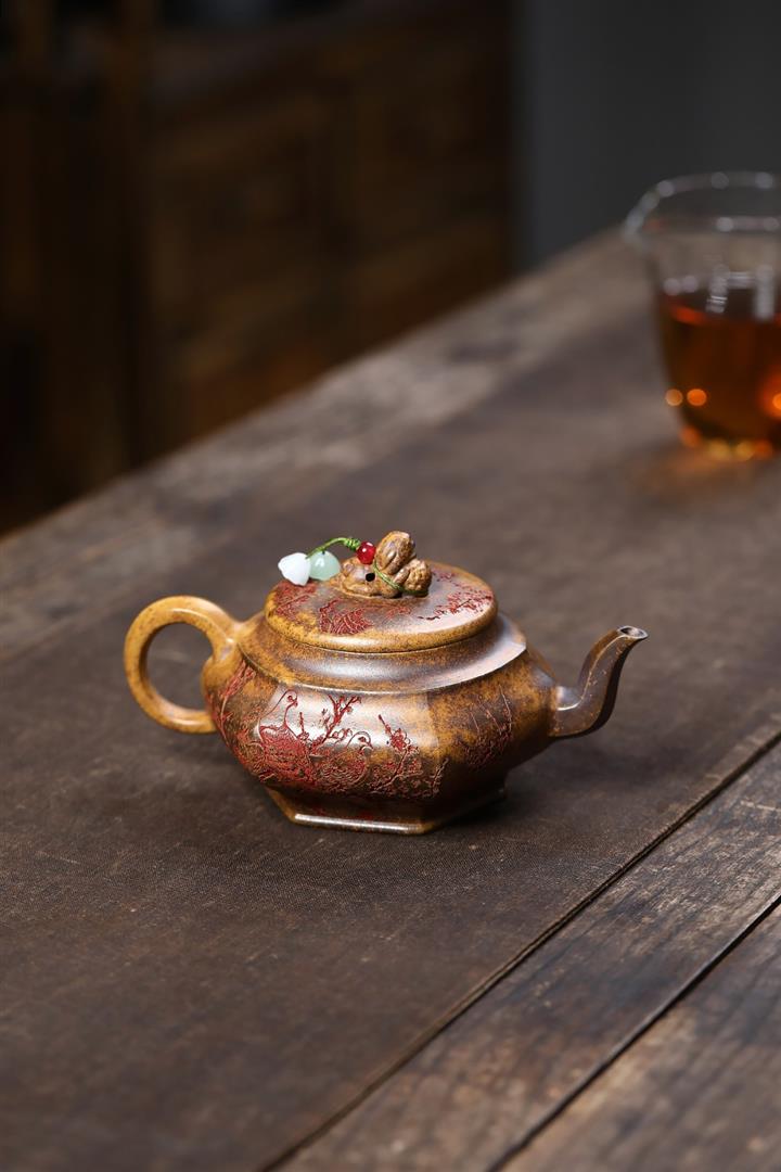 原礦龍骨金砂滿刻六方茶壺POT7725