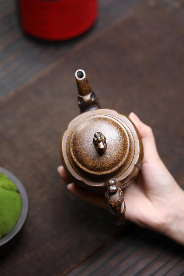 原礦紅降坡泥孔雀金鐘茶壺POT7614