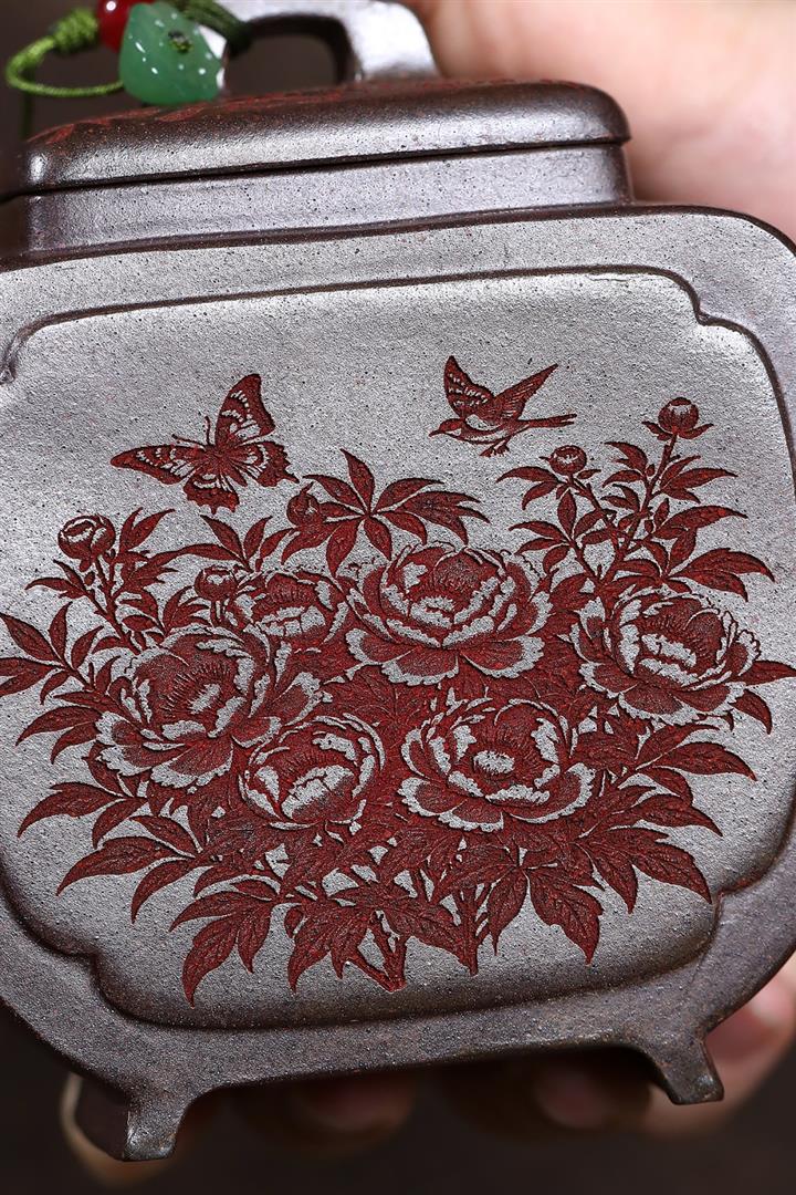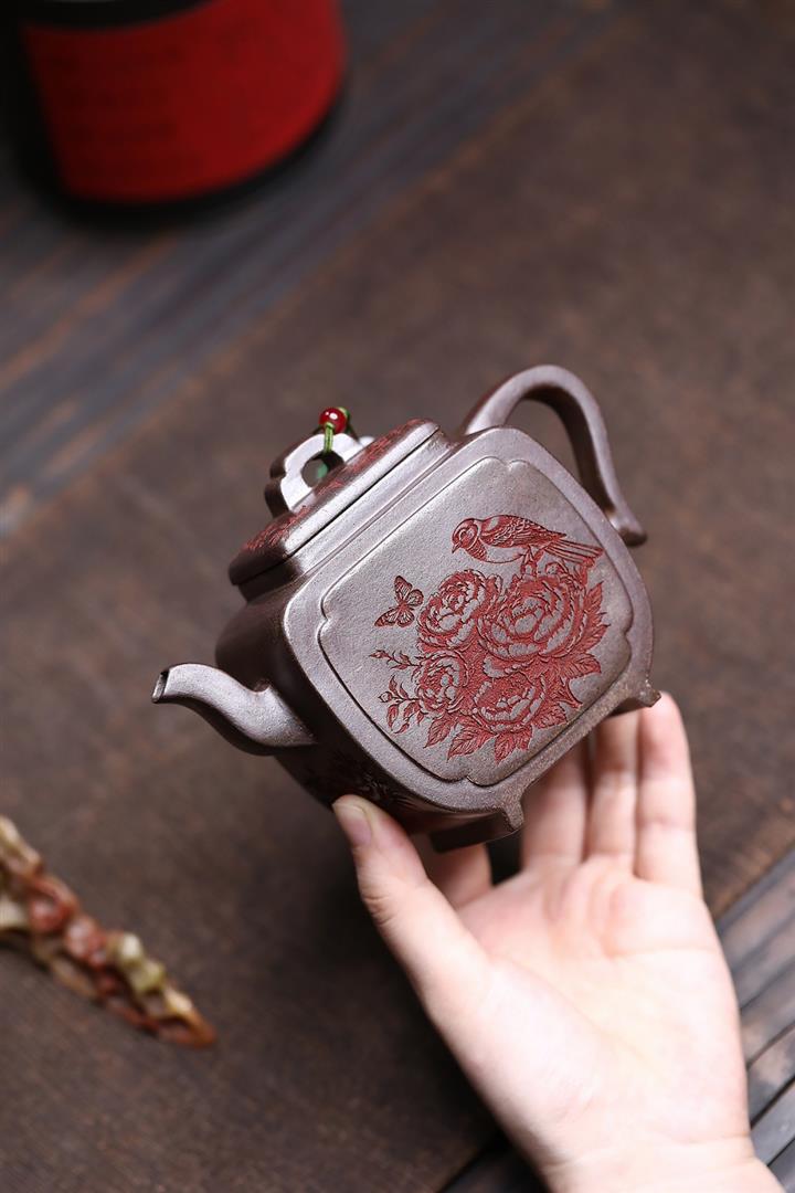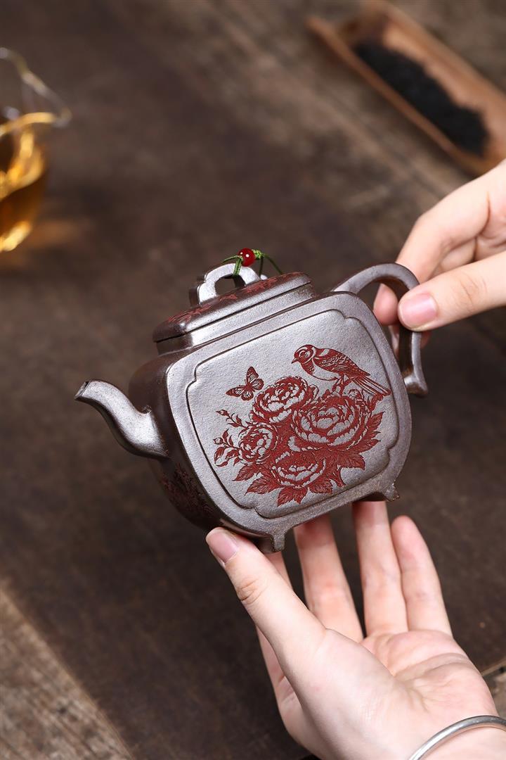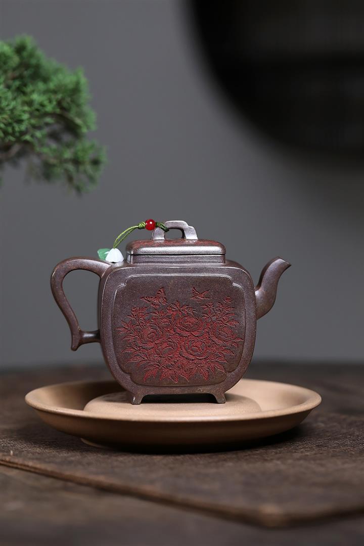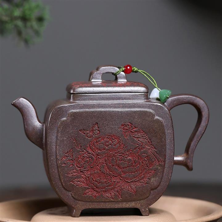 原礦沈香泥柴燒花鳥方尊茶壺POT7693