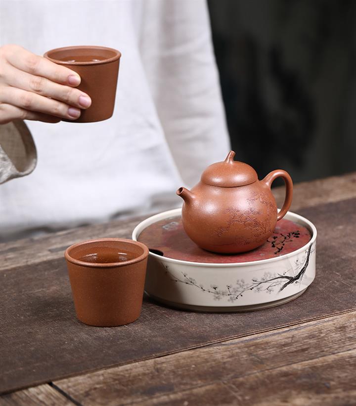 紫砂使用越久,壺身色澤越發光亮照人,氣韻溫雅。紫砂壺長久使用器身會因撫摸擦拭,變得越發溫潤光澤!