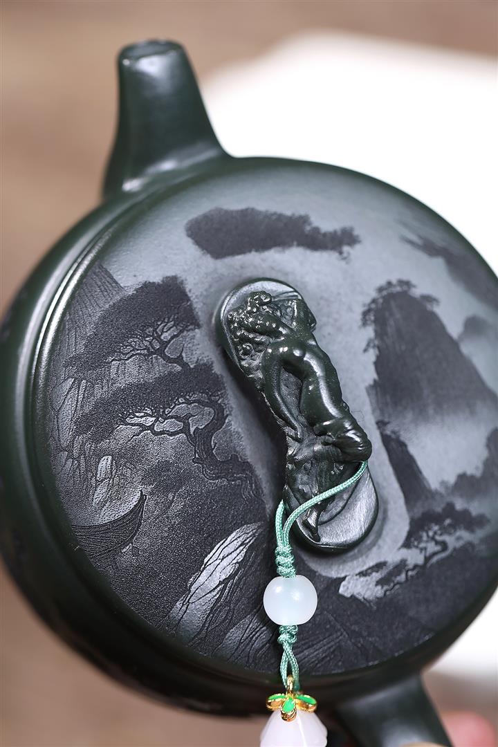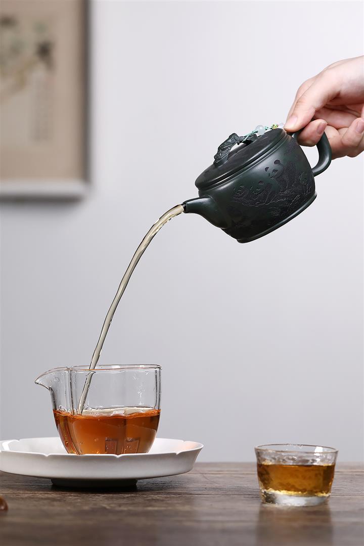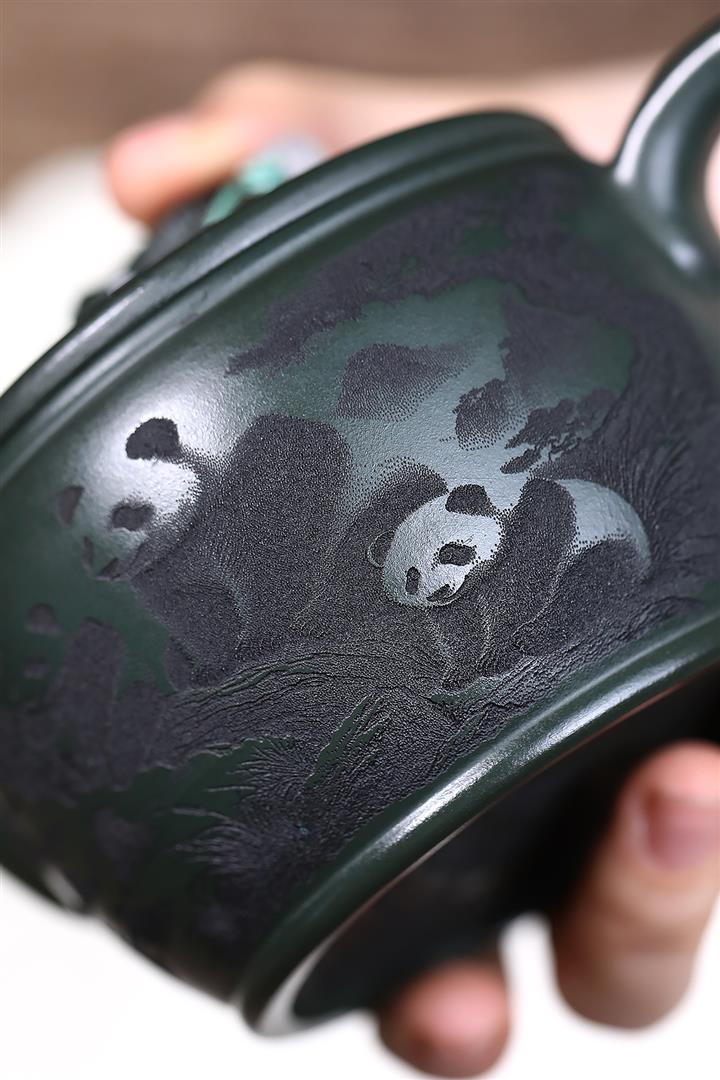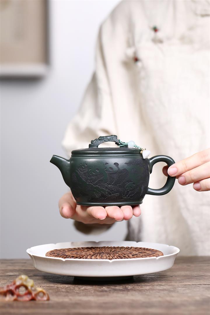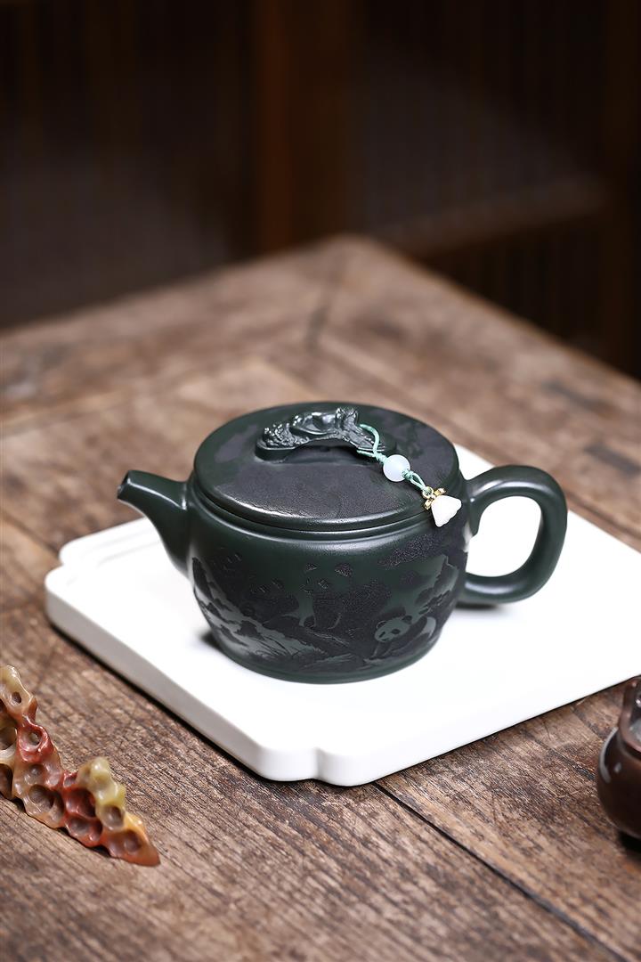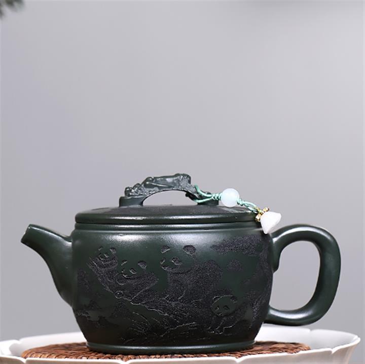 臺西墨綠泥熊貓漢瓦茶壺POT7688