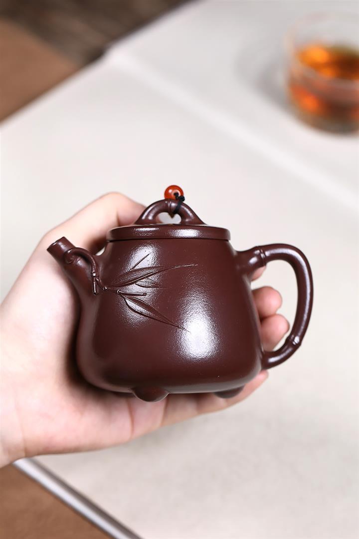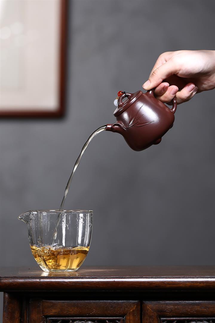 紫砂使用越久,壺身色澤越發光亮照人,氣韻溫雅。紫砂壺長久使用器身會因撫摸擦拭,變得越發溫潤光澤!