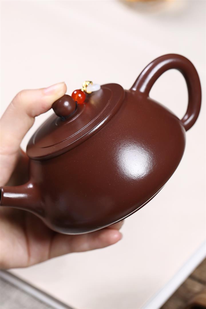紫砂使用越久,壺身色澤越發光亮照人,氣韻溫雅。紫砂壺長久使用器身會因撫摸擦拭,變得越發溫潤光澤!
