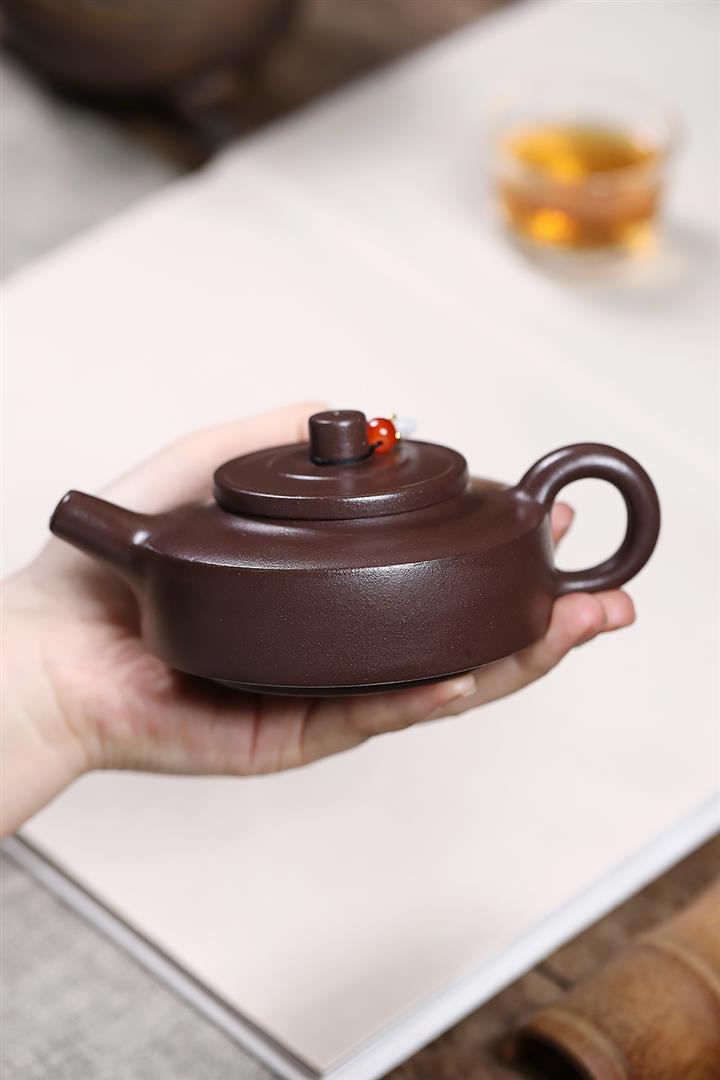 紫砂使用越久,壺身色澤越發光亮照人,氣韻溫雅。紫砂壺長久使用器身會因撫摸擦拭,變得越發溫潤光澤!