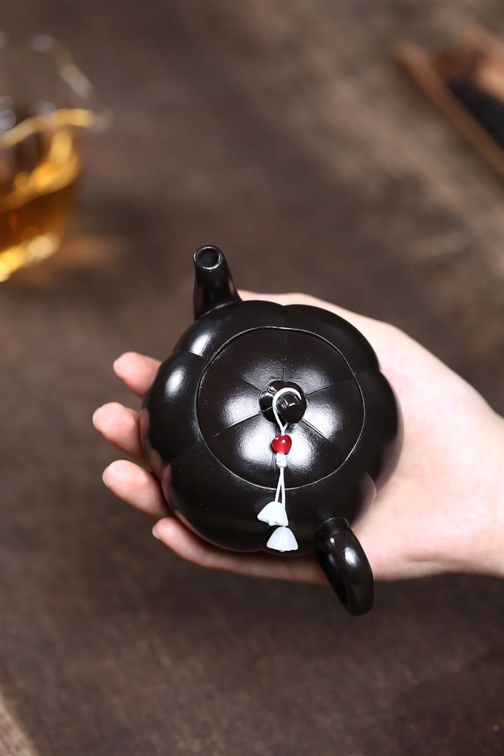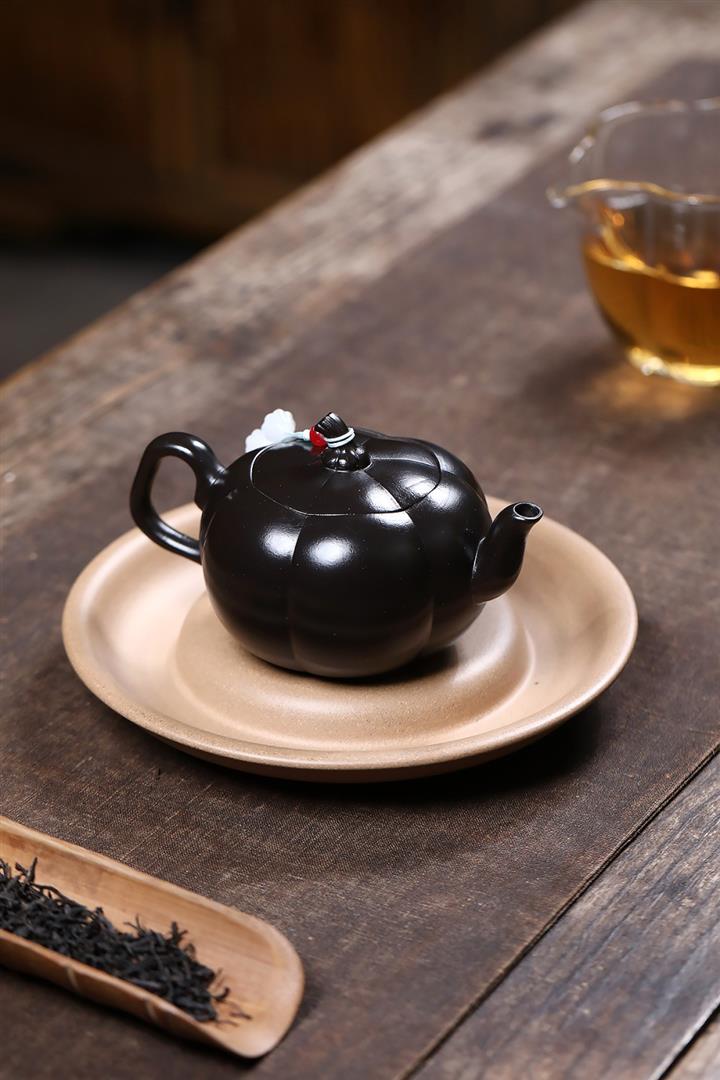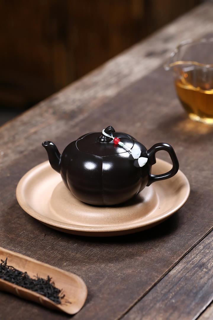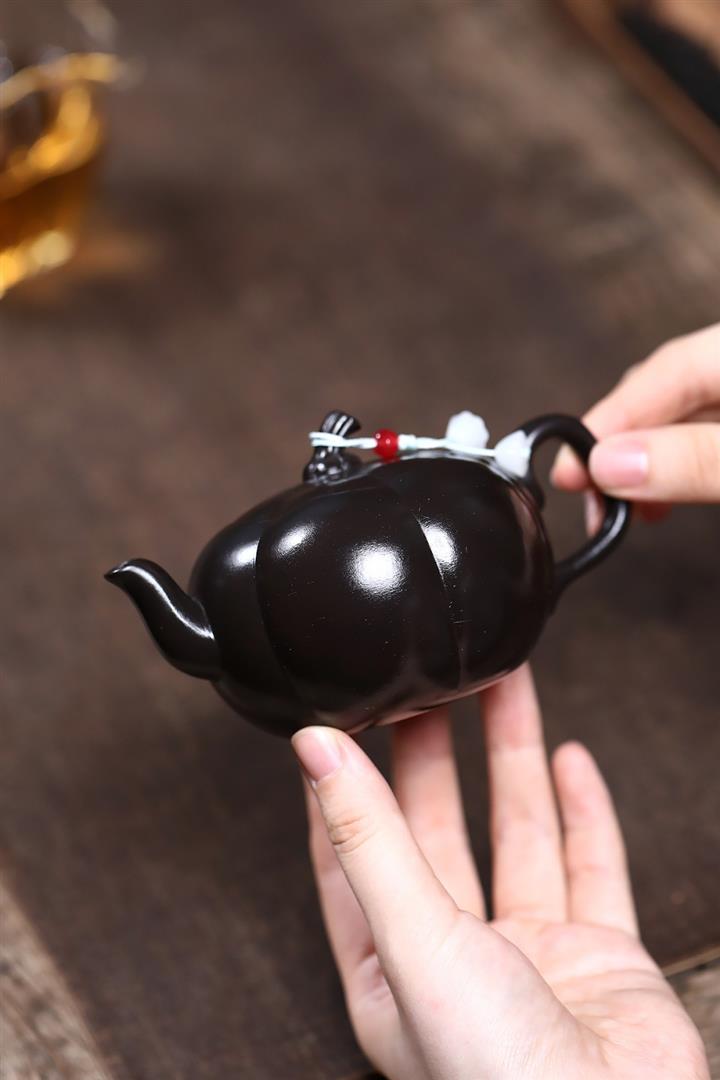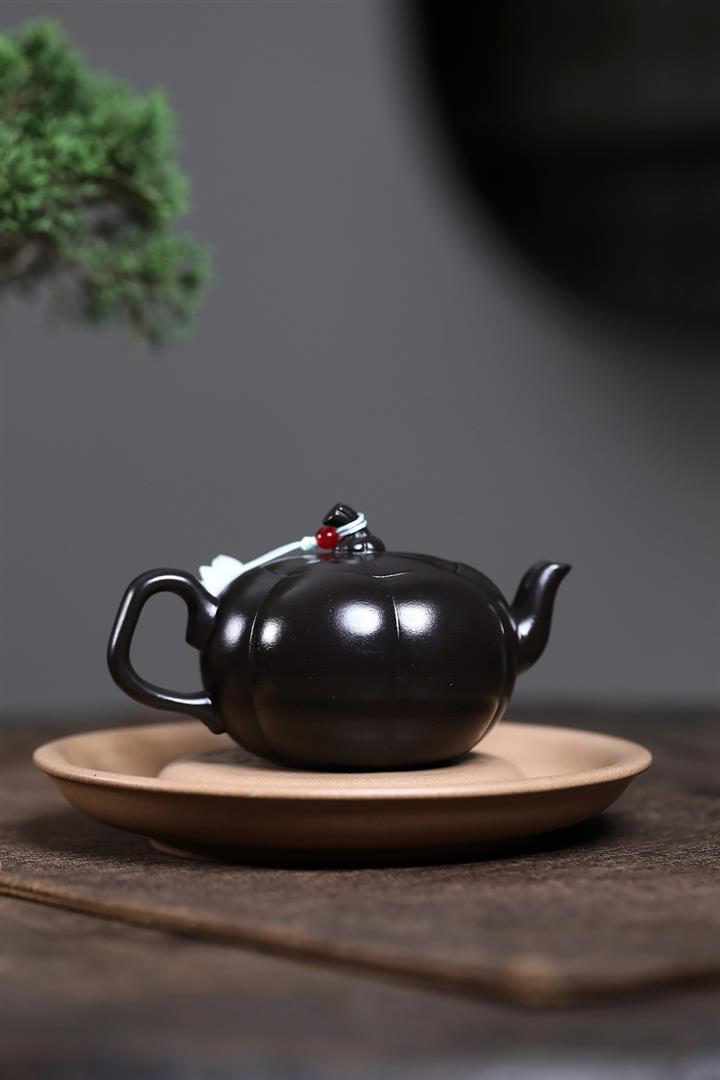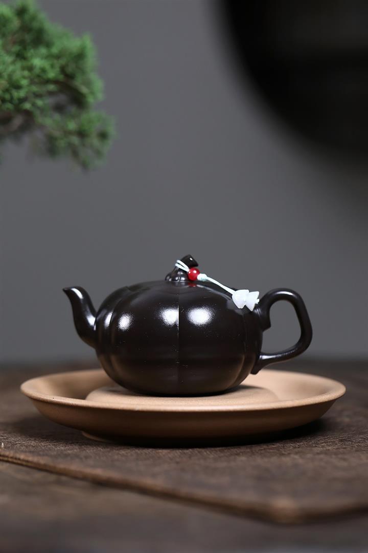 原礦黑料石黃磁吸報春茶壺POT7664